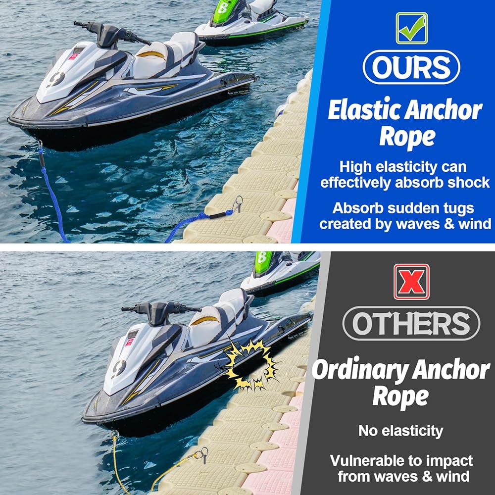 • 🛥Great for Stopping Anchor Play: Because the bungee anchor rope for boat is highly elastic and can effectively absorb the impact of wind and waves, you can lie down on the boat without worrying about shaking when taking a rest after swimming, diving, snorkeling, and other activities. When ready to move, just pull the bungee anchor line (with a storage bag).