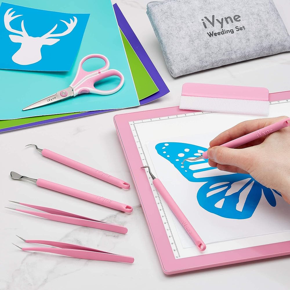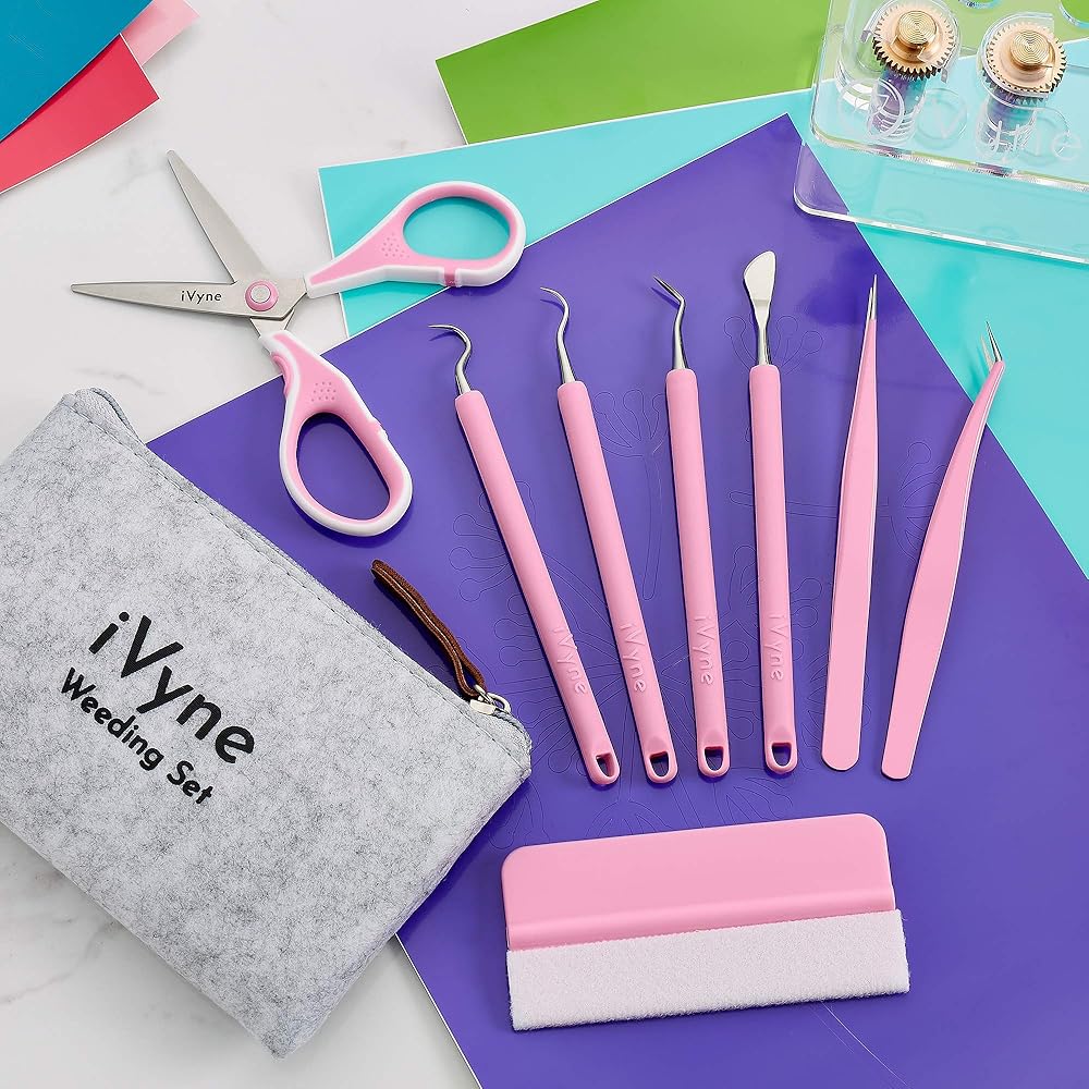 أساسيات إزالة الأعشاب من الفينيل من iVyne: وسادة خفيفة، مجموعة أدوات كاملة مكونة من 8 قطع وأداة تجميع قصاصات الشفط، التوت - وردي