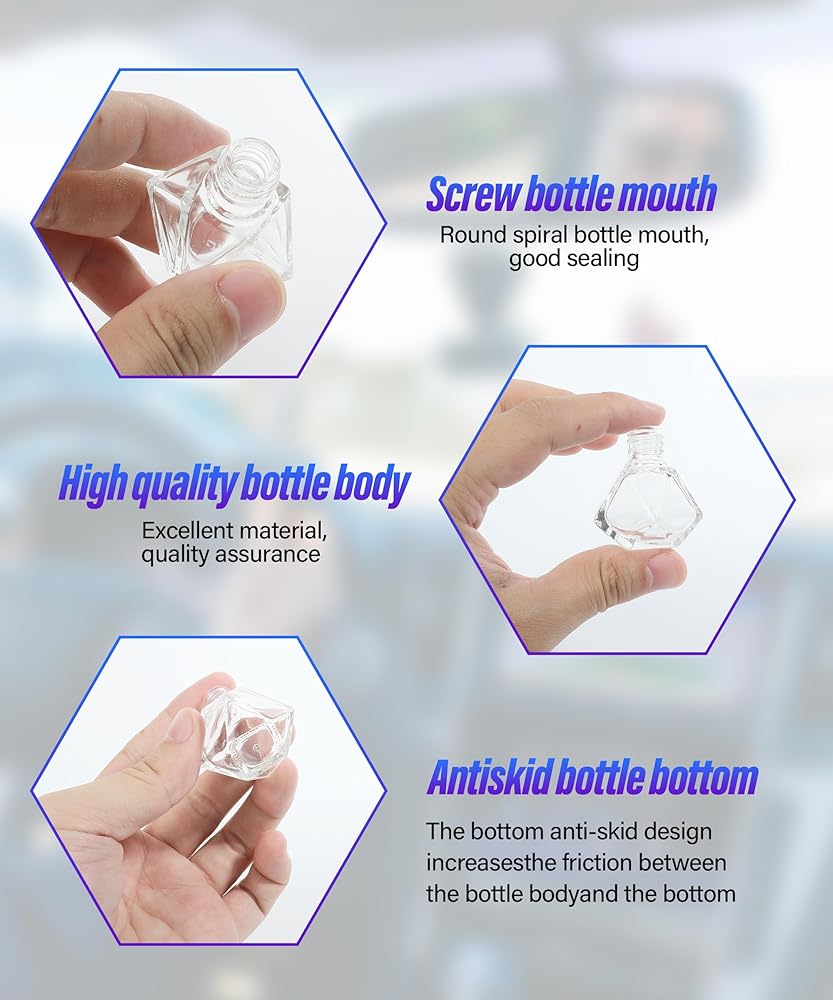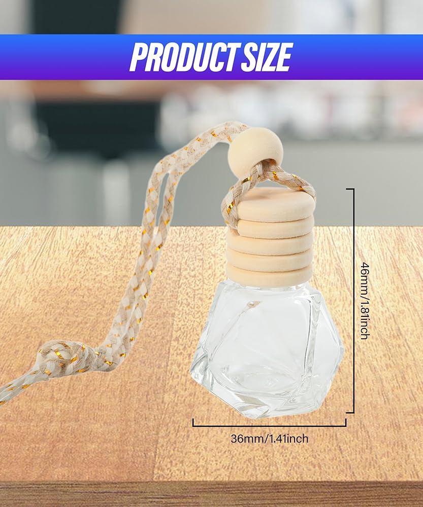 [High Quality Materials]The car perfume bottle is made of durable glass and wood. The transparent color will let you clearly see the liquid inside. The unique shape design will create a romantic atmosphere. Clear and simple, elegant and charming.