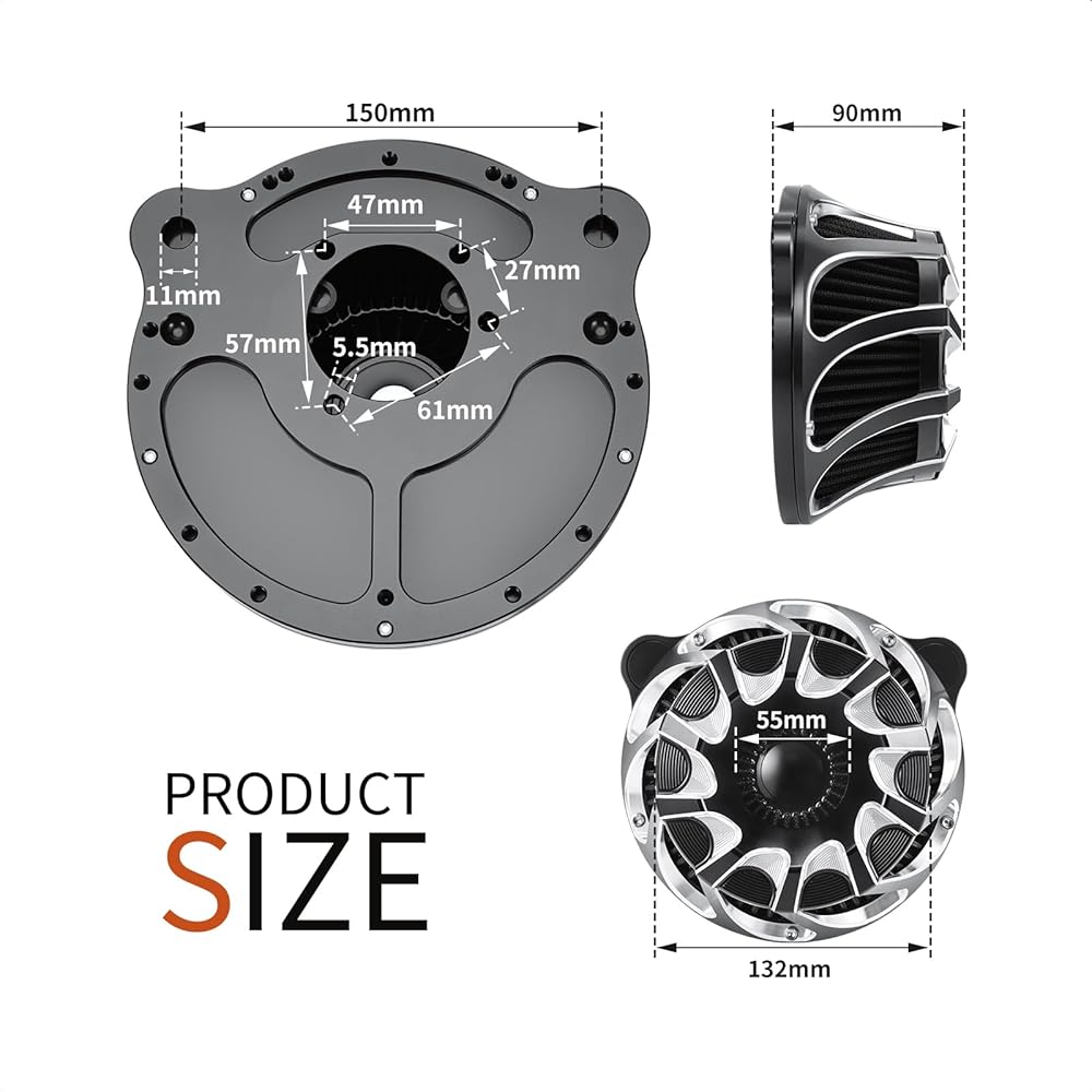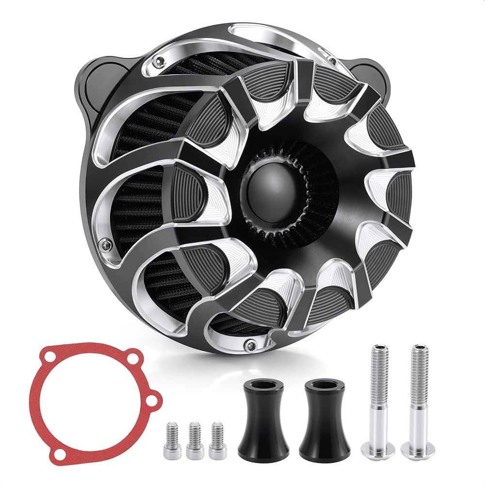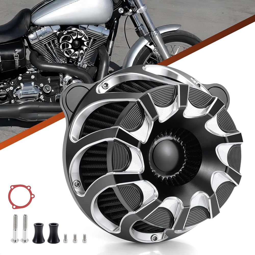 • Design: The air cleaner intake system's CNC machined housing is made from high-quality aluminum, ensuring durability and reliability for a variety of riding conditions.