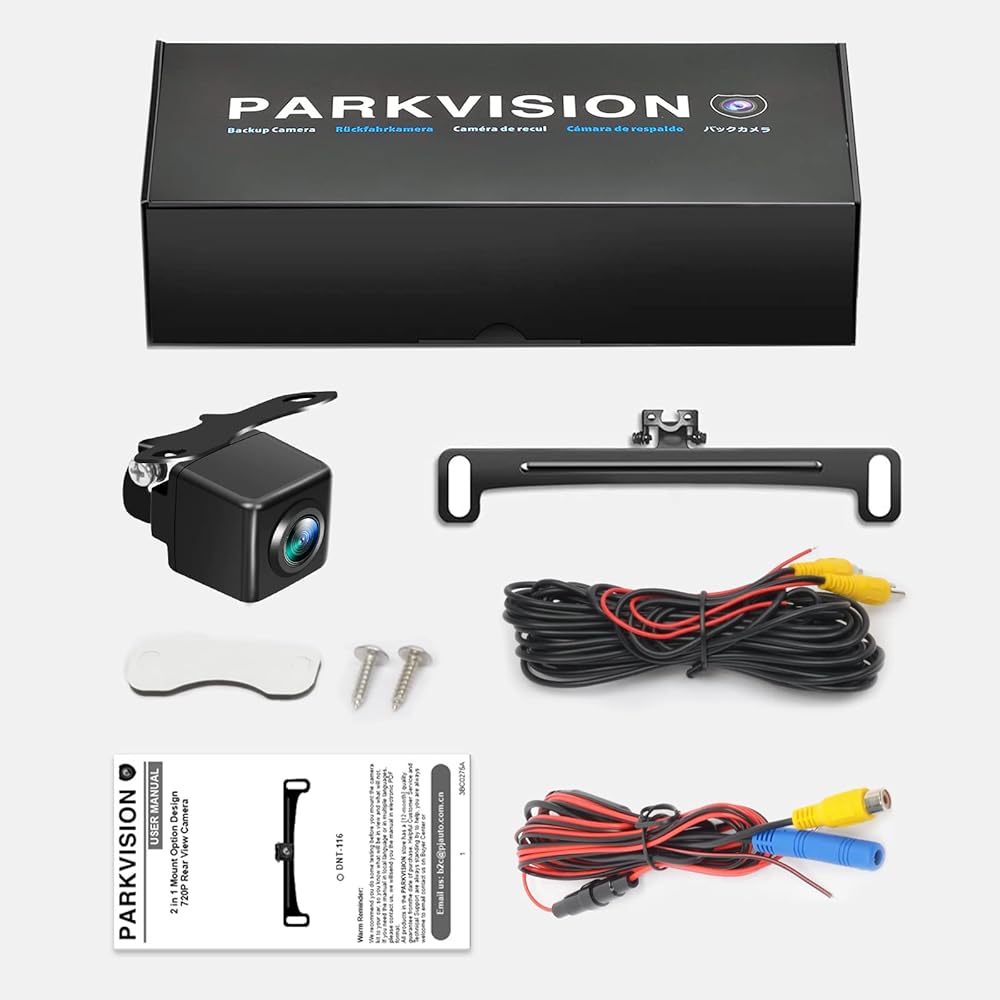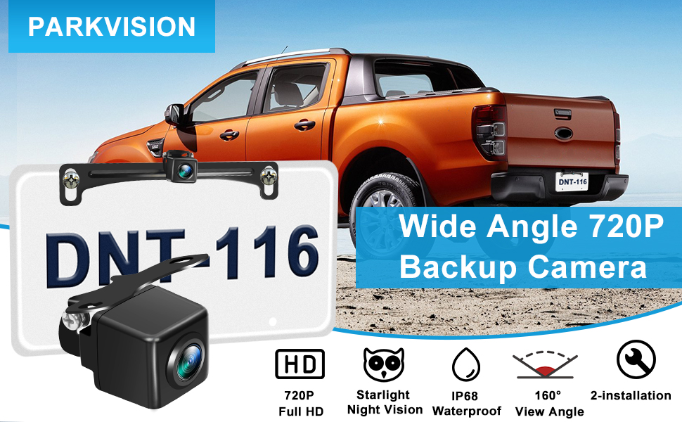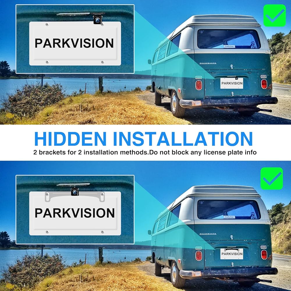 كاميرا الرؤية الاحتياطية PARKVISION للسيارات دعامة معدنية مخفية، زوايا قابلة للتعديل 160 درجة لوحة ترخيص مثبتة على كاميرا الرؤية الخلفية، HD 720P لـ DC12V مركبة SUV بيك اب شاحنة RV Van Camper Bus
