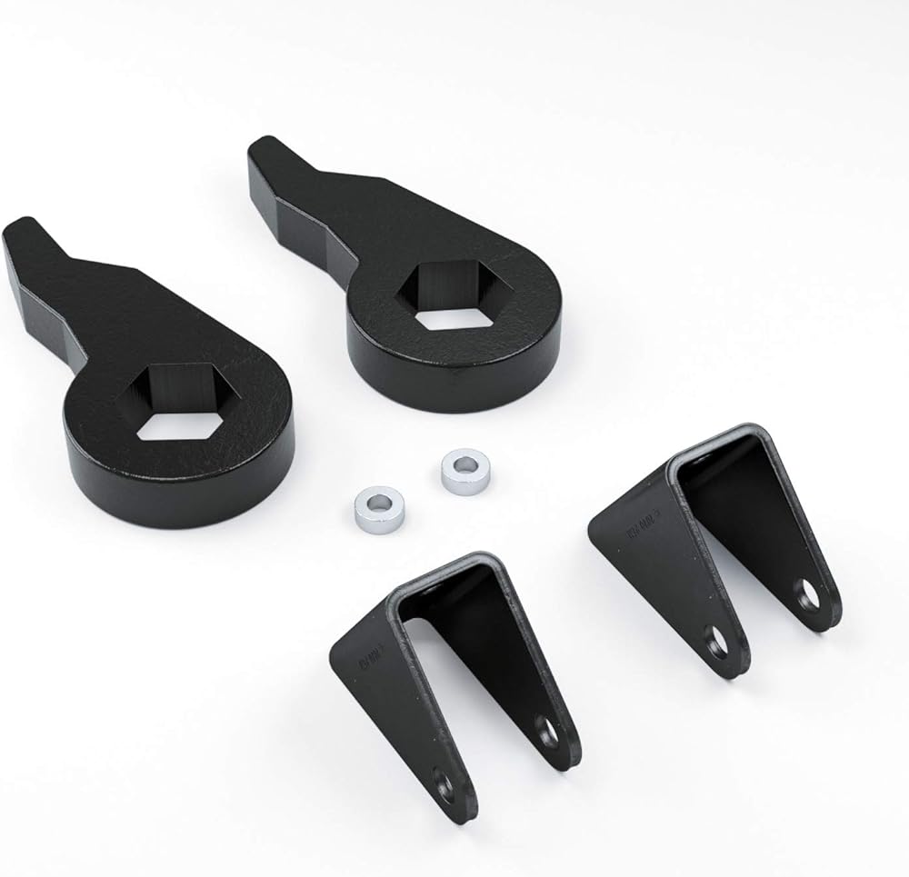 مفاتيح شريط الالتواء + دعامات تمديد الصدمات - رفع قابل للتعديل 1-3 بوصة - متوافق مع سيارات الدفع الرباعي جي إم سي تشيفي ذات 8 عروات، يوكون سييرا أفالانش سيلفرادو (انظر الوصف لمعرفة السنة والطراز بالضبط)