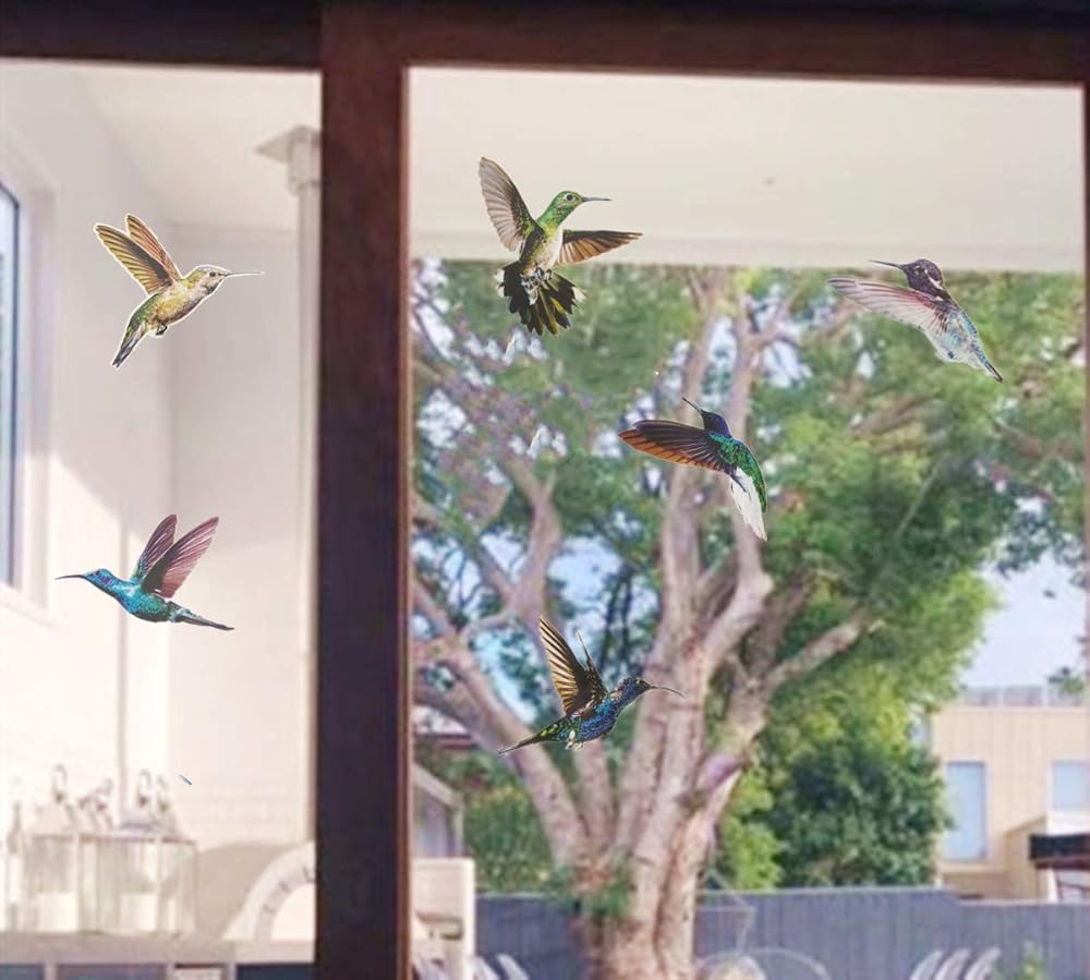 ملصقات نافذة الطيور المضادة للتصادمات، باب زجاجي لحماية الطيور وحفظها، الطائر الطنان (6 قطع)