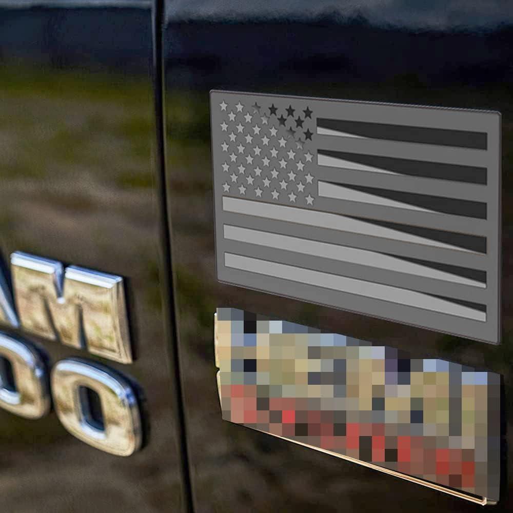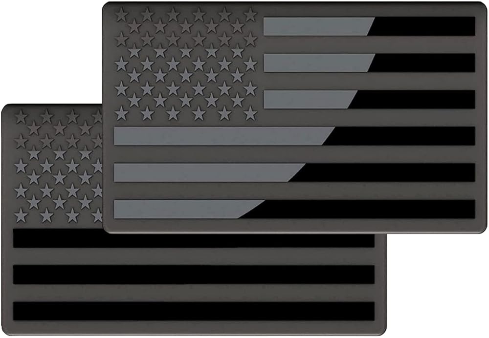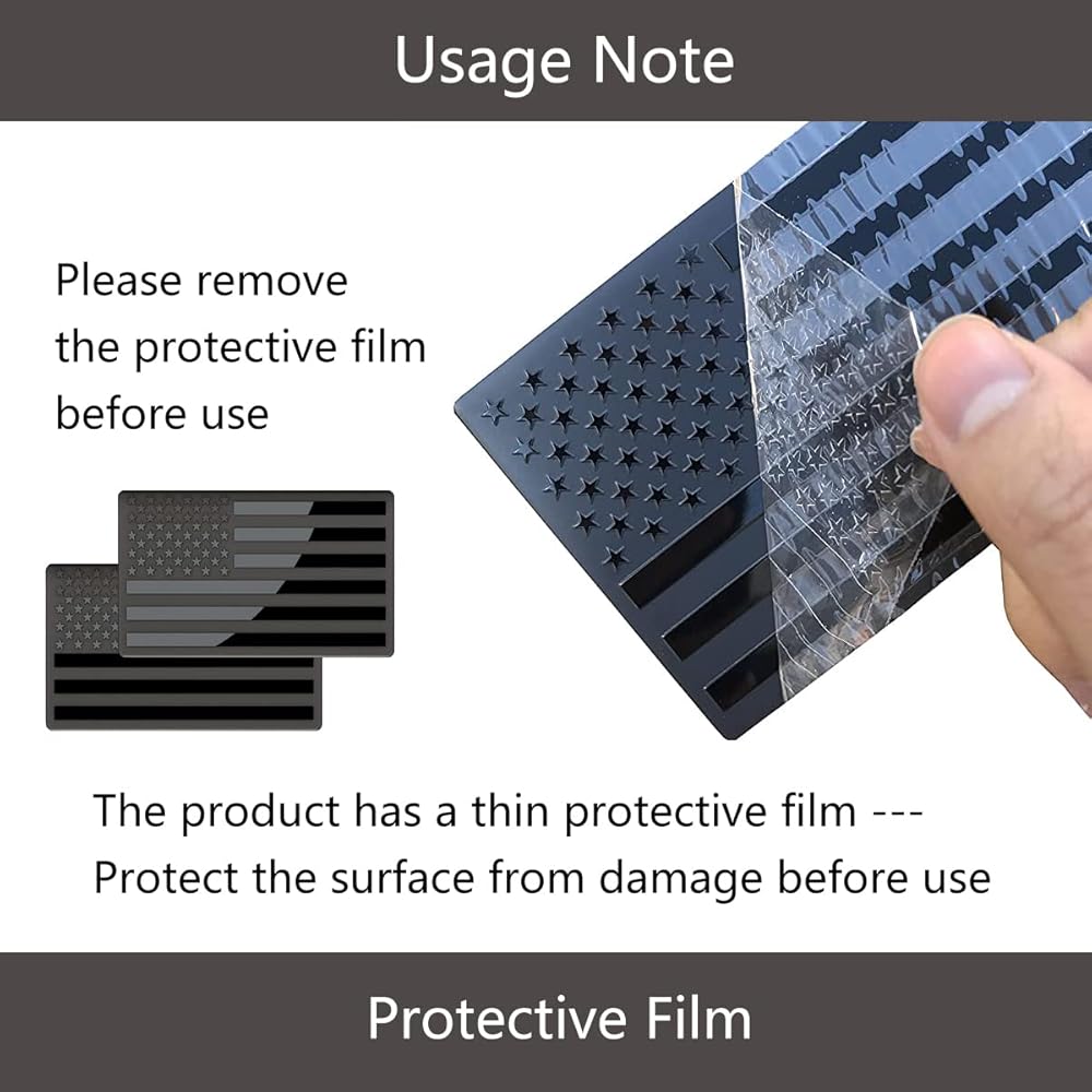 Package: Unique and beautiful black embossed flag decal for patriots, each order includes 2 flag badges (come with one USA Regular Orientation and one USA Reverse Orientation).