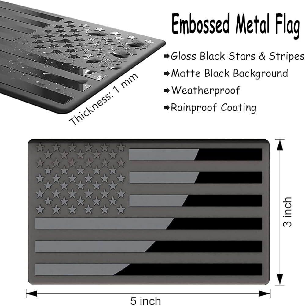 2 Pack Black American Flag Emblem Stickers, Embossed 3D Metal US Flag Car Decals, 5"x 3" Small USA Bumper Sticker Compatible with Truck, RV, SUV, Motorcycle and More (Left and Right)