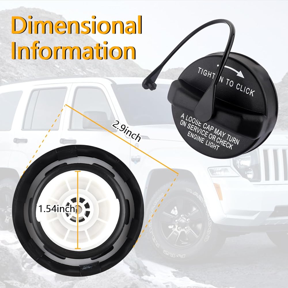 • ⭐ Buyer's Guide:Gas cap replacement OEM#52030377AB, 5278632AG, 52030377AA. Its cover diameter is 2.9 inches, the diameter of the threaded interface is 1.54 inches, and the overall height is 2.53 inches. Please check the oem/size/year/model carefully to make sure our fuel tank cap is what you need before placing order, thanks!