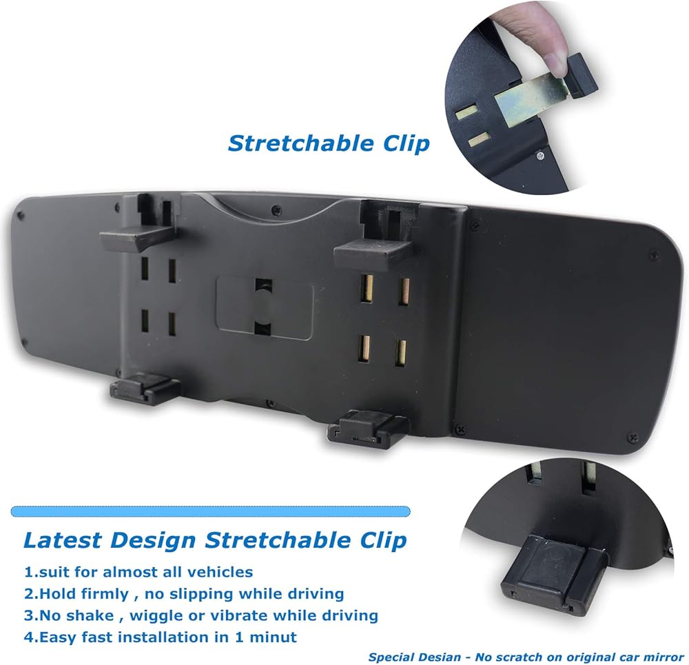 Universal type: size about 10.6*3.1 inch (Length*Width, which original mirror is no longer than 10 inch and no wider than 3 inche can be installed). Its stretchable-clip design enables it to fit universal vehicles, such as cars, SUV, Vans and Trucks