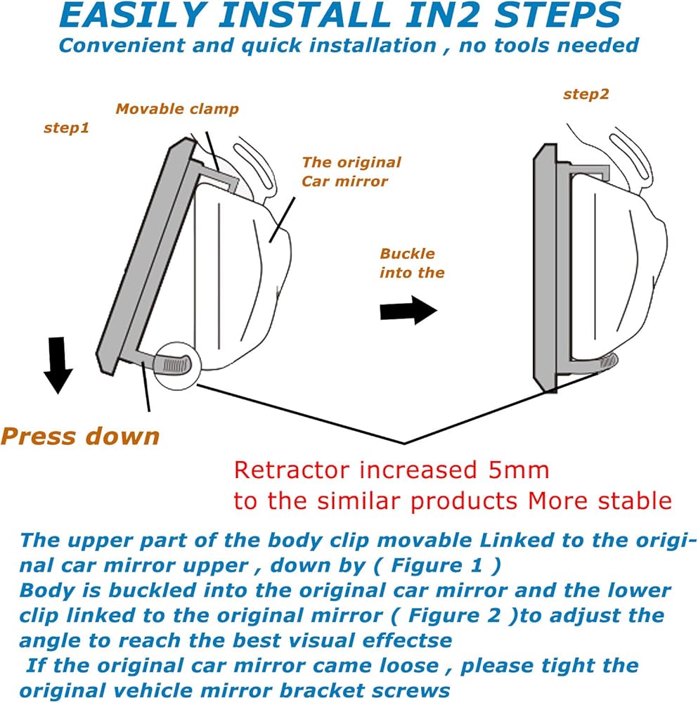 (NOT a COVER or DECAL)A whole mirror that easy to clip on your original mirror: this car mirror has two adjustable clips, place the top clips against the top of your mirror and hold it in place while you pull out the bottom clips enough for them to snuggly grip the bottom of your mirror
