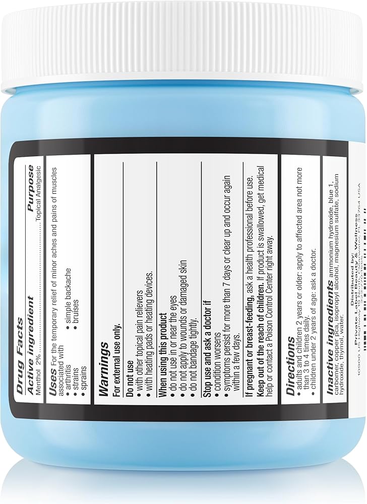 جل علاجي مهدئ ومهدئ - يحتوي جل تهدئة العضلات الخاص بنا على 2% منثول علاجي، مما يساعد على تبريد وتهدئة العضلات. على عكس منتجات تهدئة العضلات العادية، فإن جل التهاب المفاصل وآلام المفاصل هذا يهدئ بشكل مؤقت ألم العضلات وتيبسها بسبب الإصابات الطفيفة أو السقوط أو التدريبات المكثفة أو الإجهاد العام.