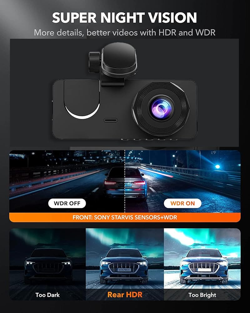 🚕【Dash Camera with Free 64GB SD Card】2.0'' IPS screen 1080p car camera with 64GB SD card (the SD card has already been inserted into the dash cam), can work infinitely with a loop recording function.
