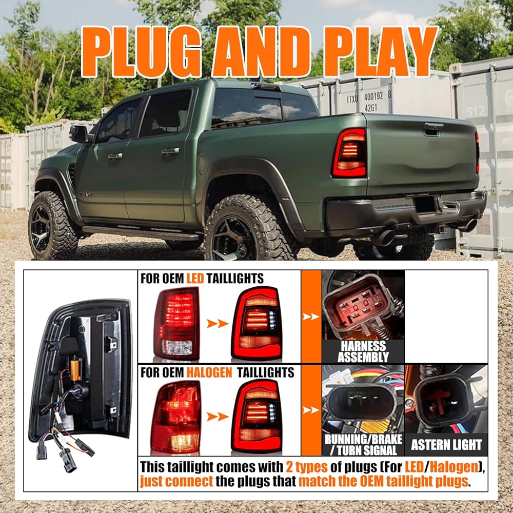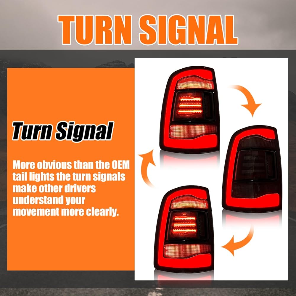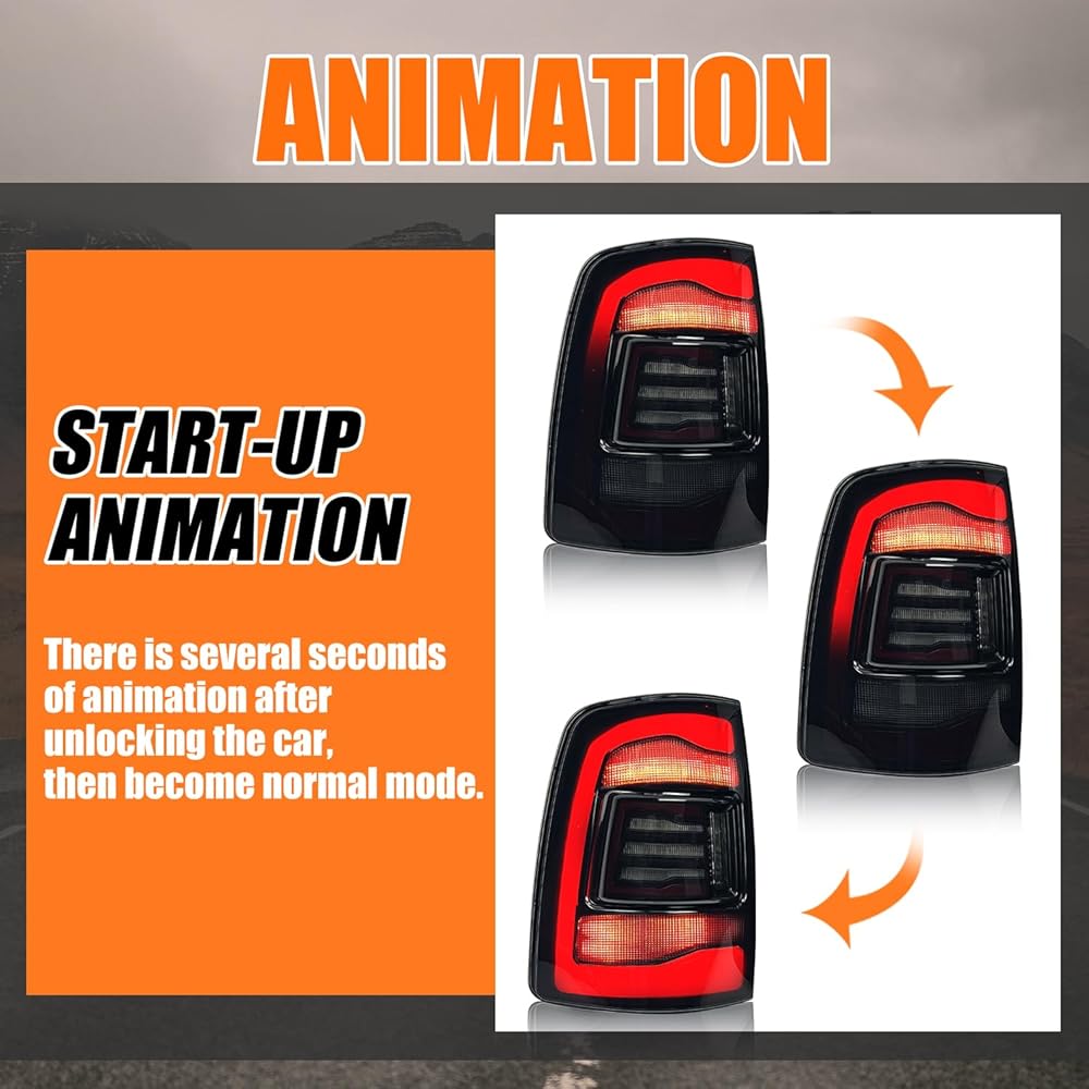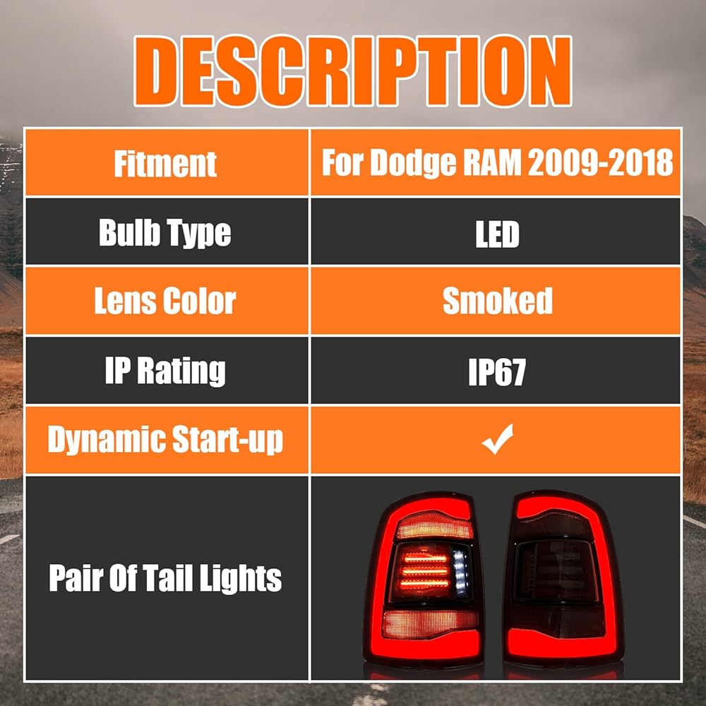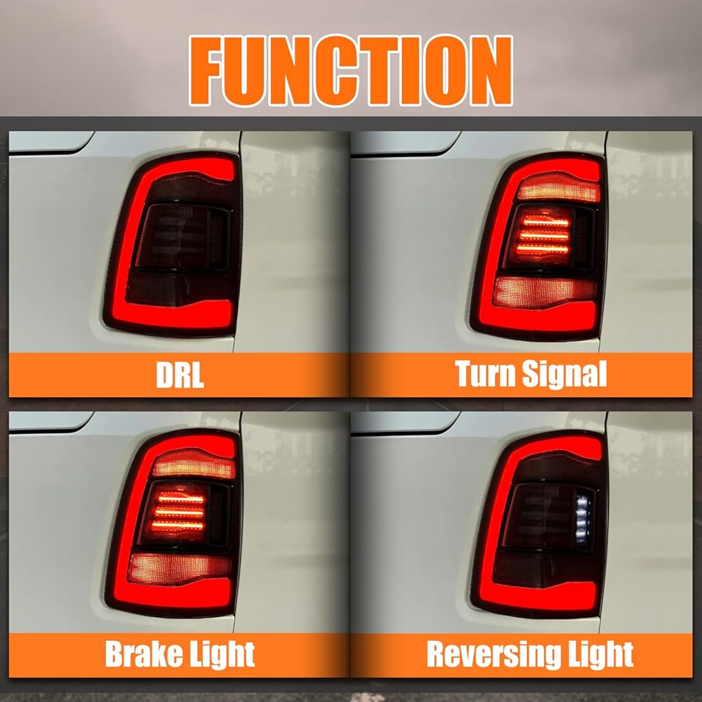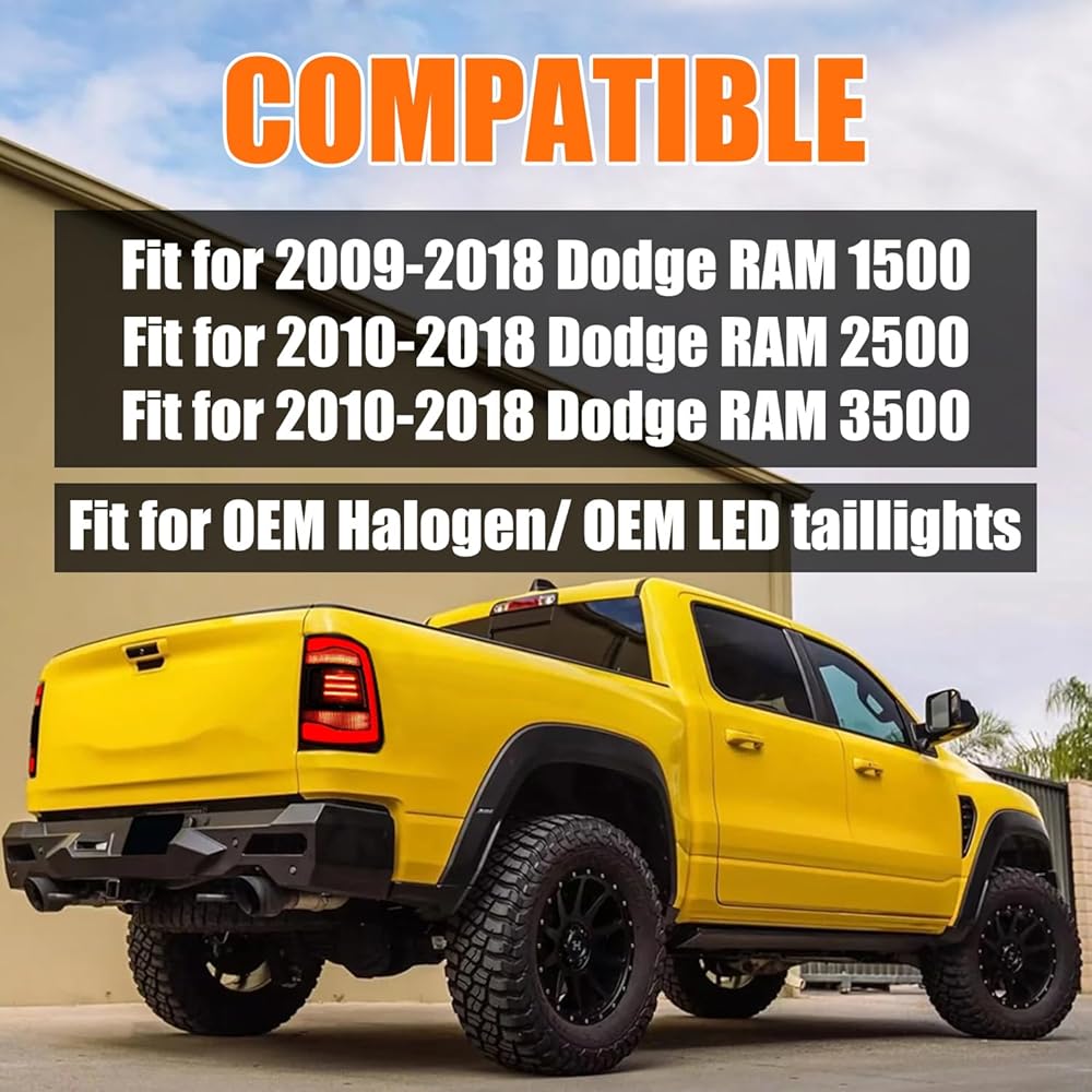 مصابيح خلفية LED لـ 2009-2018 Dodge RAM 1500 2500 3500 [لطراز الهالوجين وLED في المصنع] مجموعة الضوء الخلفي مع مصباح خلفي للرسوم المتحركة/السائق والراكب