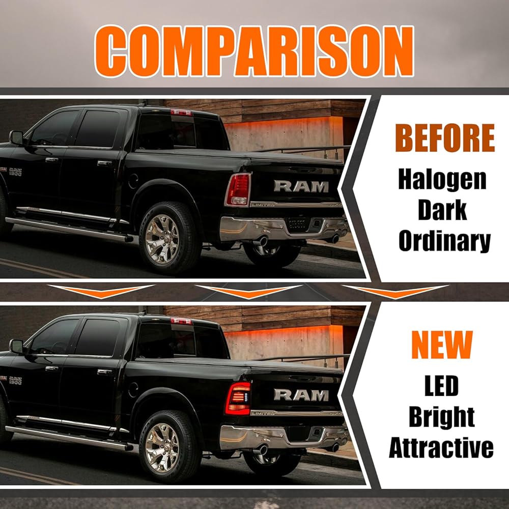 【الإعداد】مصابيح خلفية LED من COOLDNA متوافقة مع 2009-2018 Dodge RAM 1500 2500 3500 [لطراز هالوجين المصنع وLED]. هذا المصباح الخلفي غير مناسب للطرز ذات الضوء الخلفي LED الأصلي. تتضمن الحزمة زوجًا من المصابيح الخلفية (الضوء الخلفي لجانب السائق والضوء الخلفي لجانب الراكب)