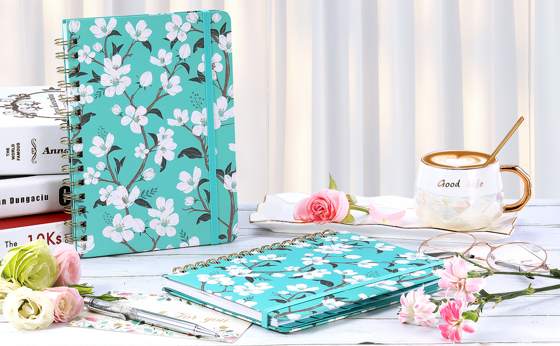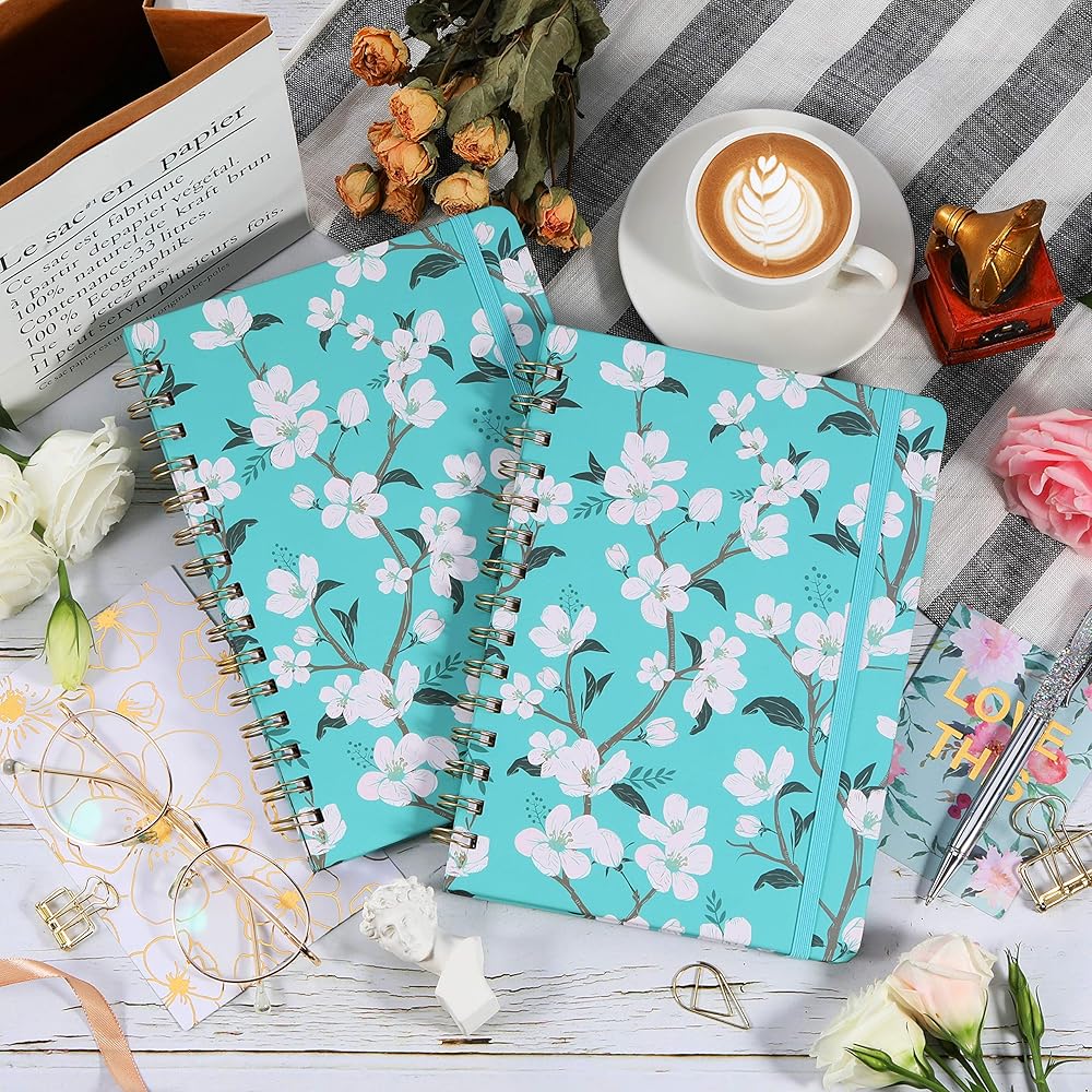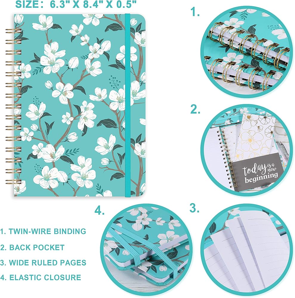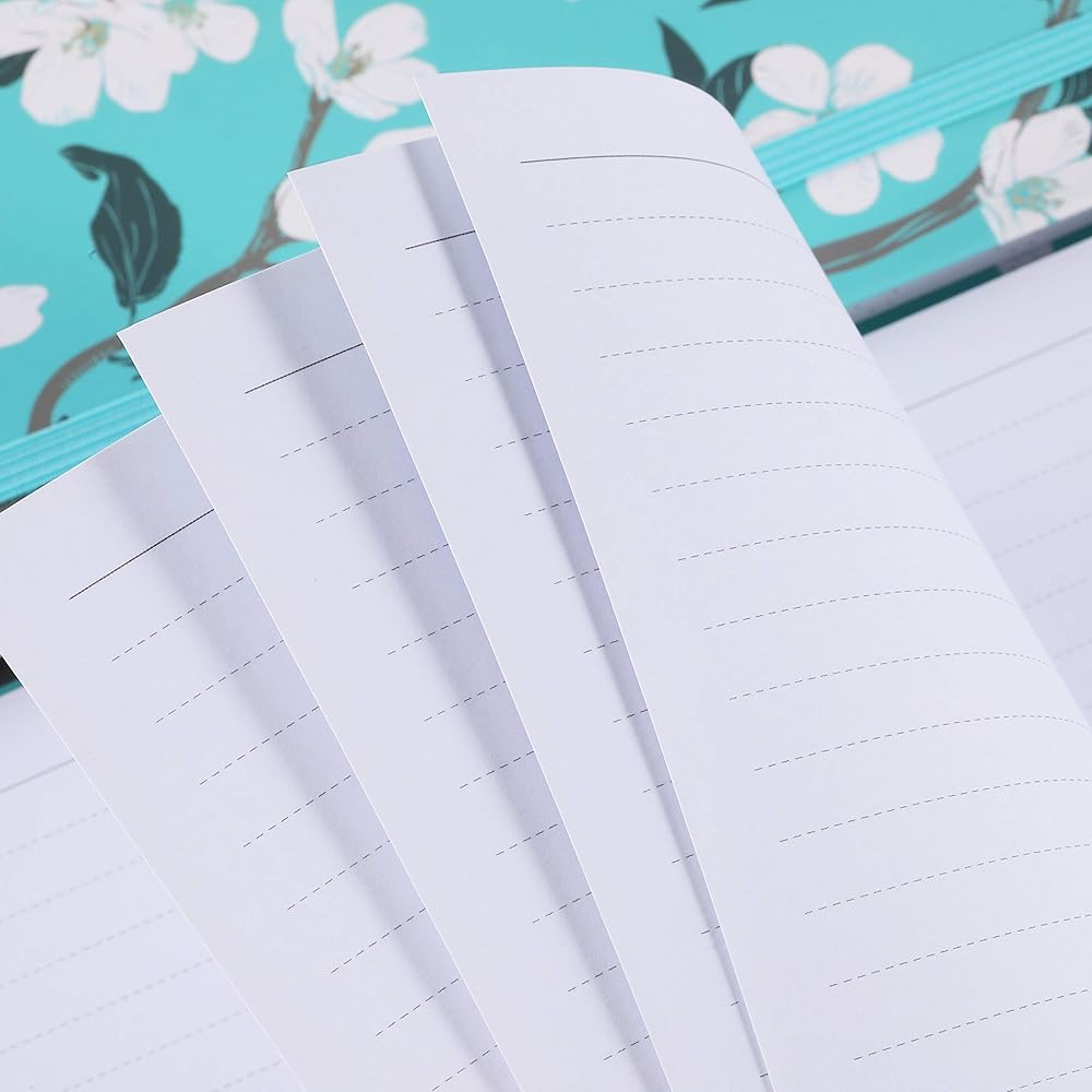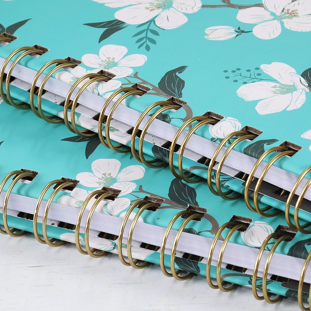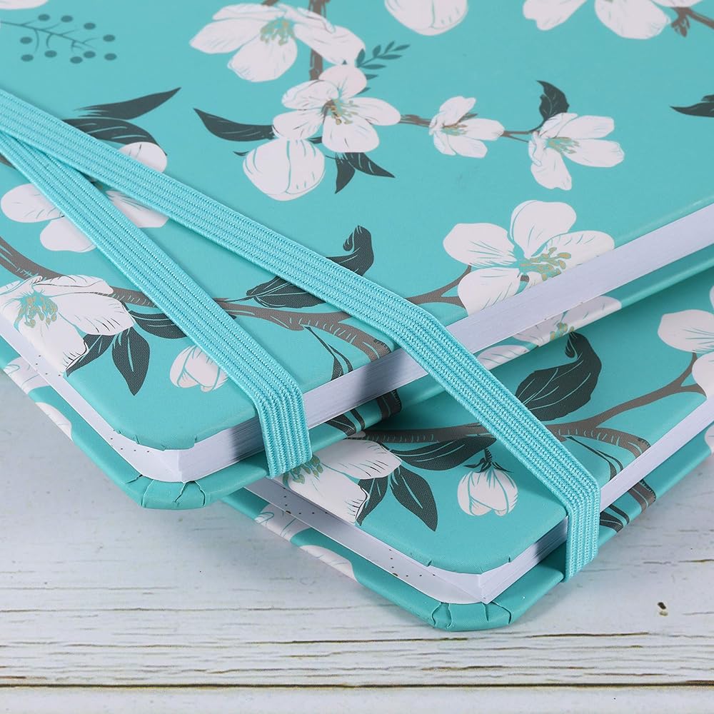 🌼 مجلة الغلاف الصلب - تصميم صفحات مسطرة كلاسيكية للاستخدام اليومي + غطاء خلفي أمامي من الزهور باللون الأزرق المخضر وتصميم مقاوم للماء + حجم مثالي للحمل في حقيبة الظهر لسهولة الخروج اليومي.