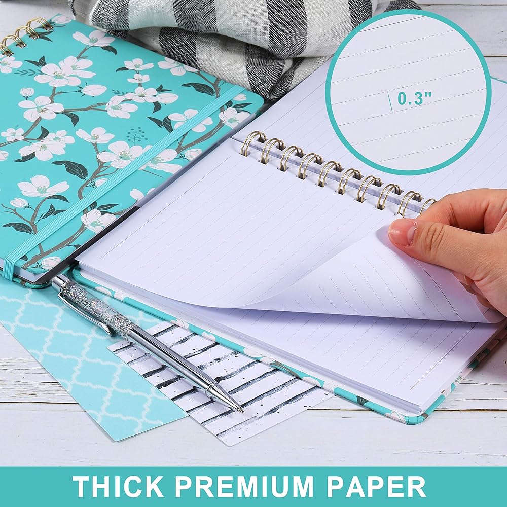🌼 ورق سميك ممتاز - 136 صفحة مسطرة مصنوعة من ورق أكثر سمكًا من الورق العادي في السوق تقلل من تسرب الحبر، وتمحو الاهتراء ومشكلات الظل + ورق أبيض وخالي من الأحماض + ربط قوي بسلك مزدوج يحافظ على دفتر الملاحظات الخاص بك سليمًا.
