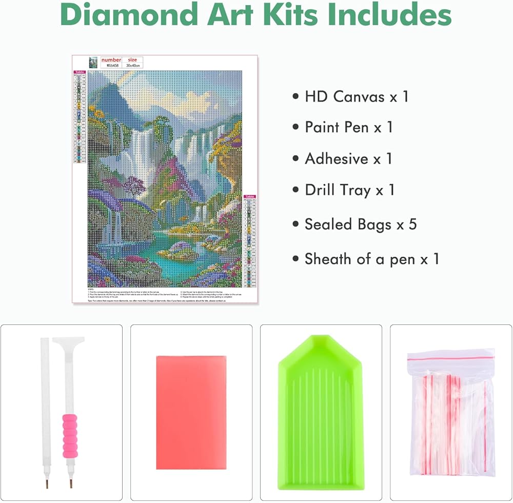 مجموعات الرسم الفني الماسي 5D من MOGTAA للبالغين، مجموعات رسم الماس للمناظر الطبيعية للمبتدئين، مجموعات نقاط الماس الحفر الكاملة الفن والحرف اليدوية لديكور المنزل 12 × 16 بوصة