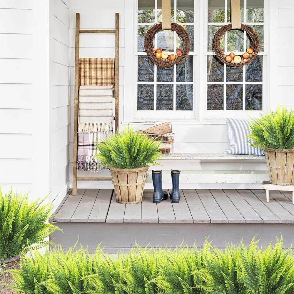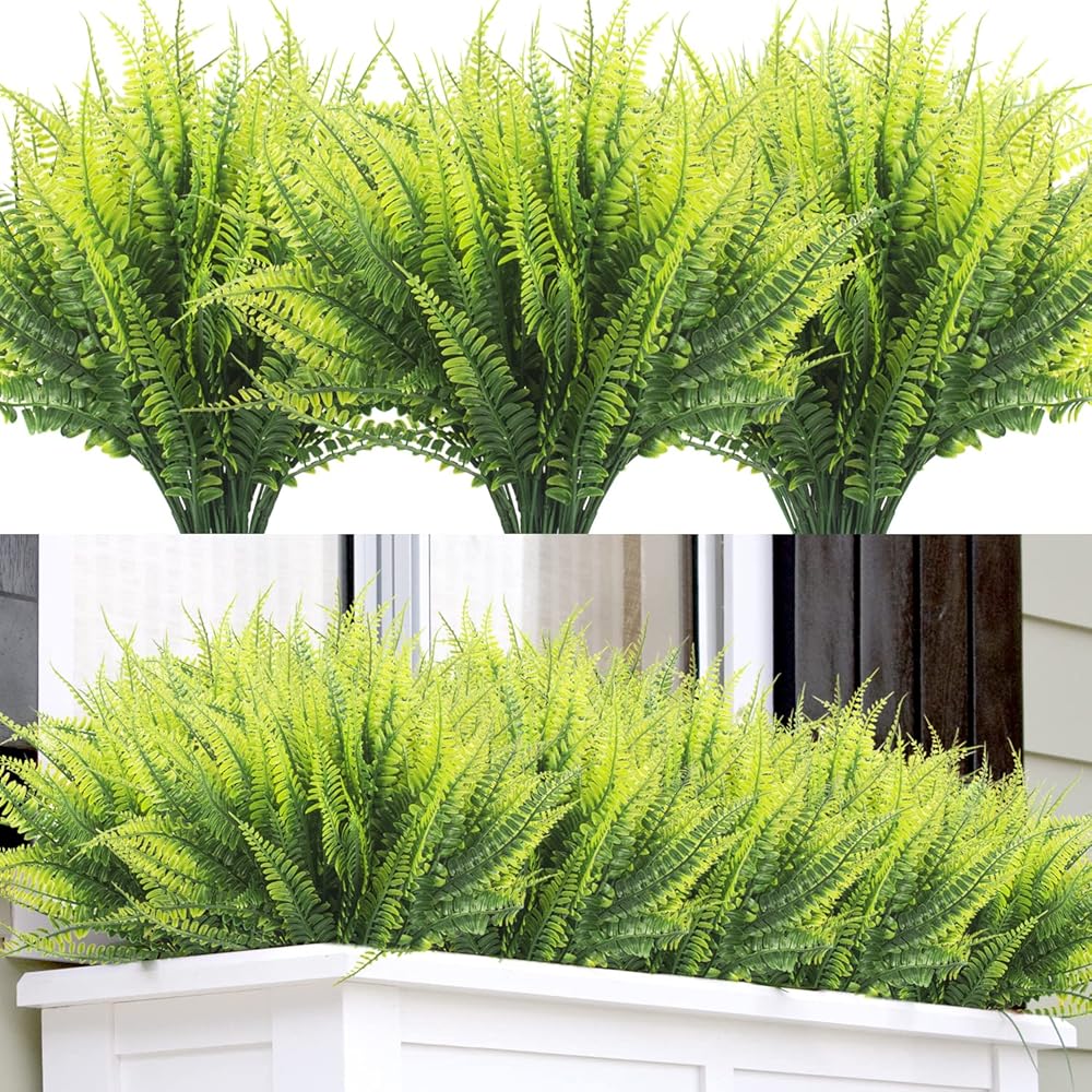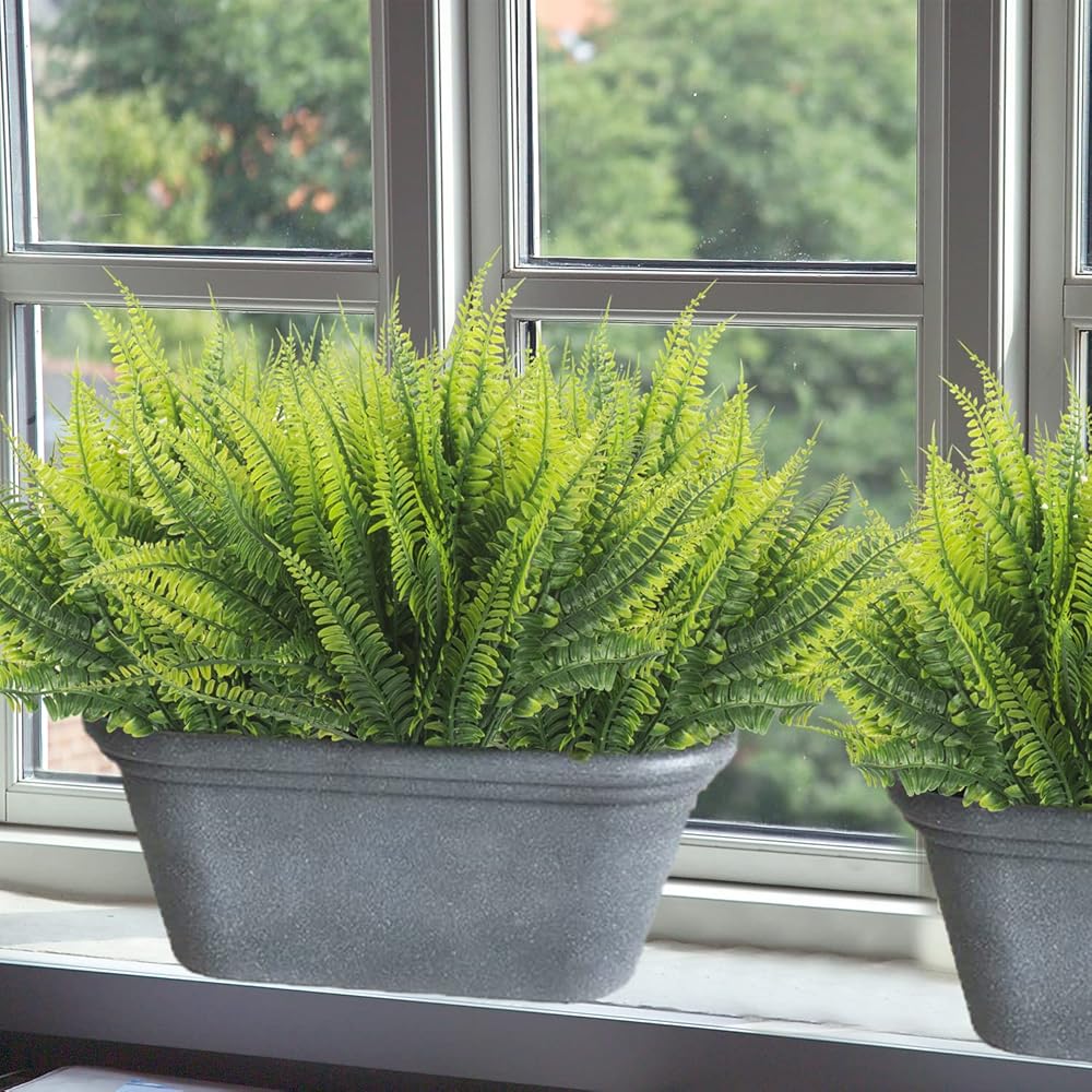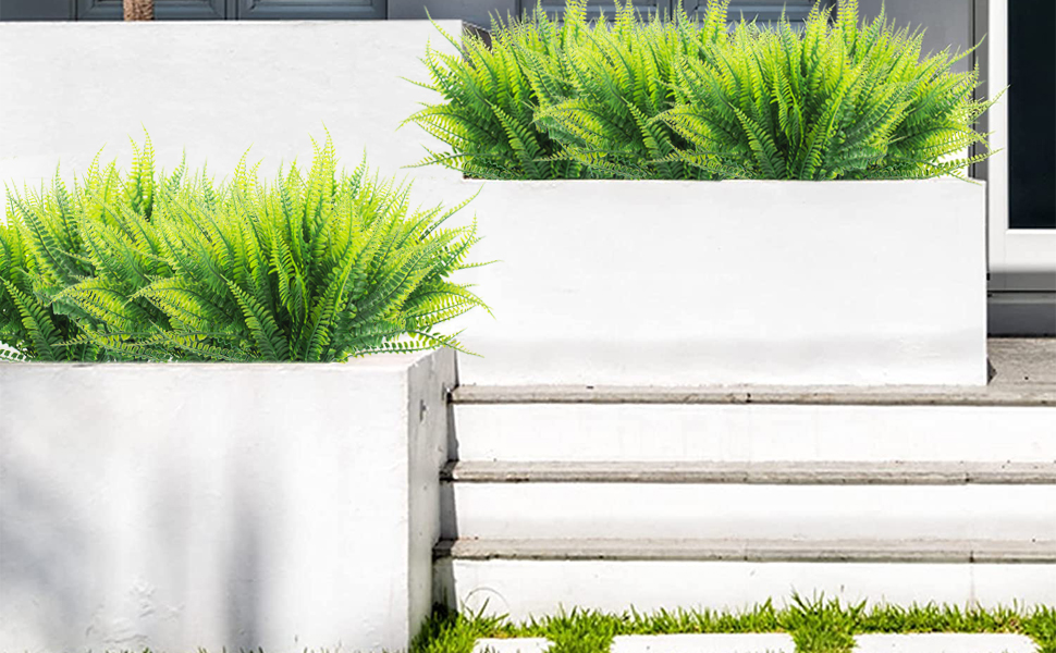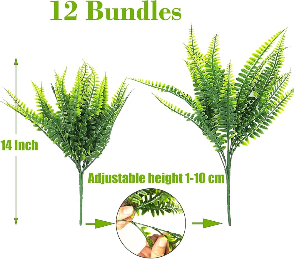 نباتات صناعية، 12 حزمة وهمية من نباتات السرخس بوسطن الخضراء المقاومة للأشعة فوق البنفسجية في الهواء الطلق وزهور بلاستيكية داخلية وخارجية معلقة لديكور المنزل والحديقة