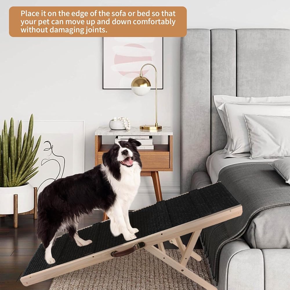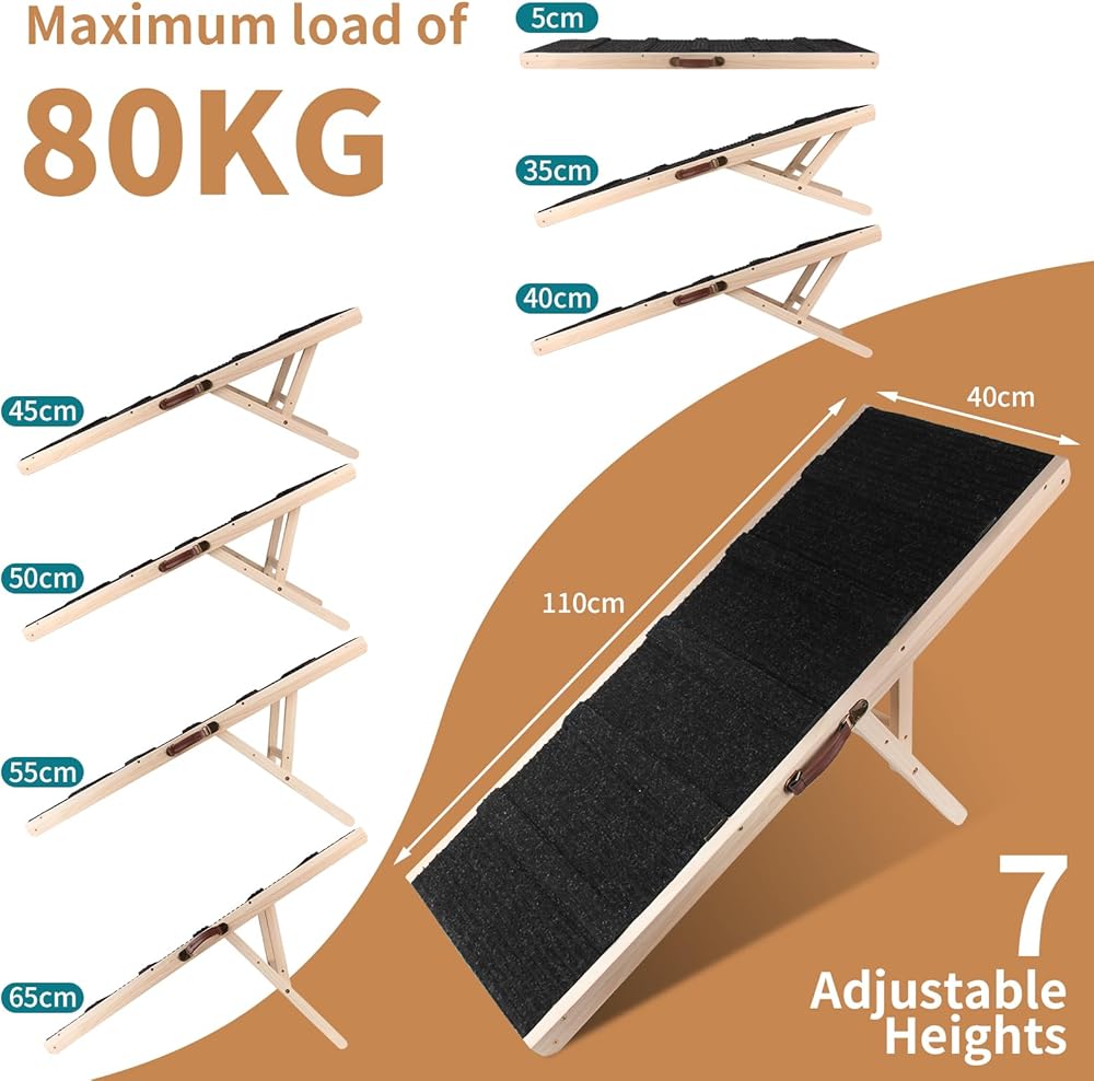 • قوي ومستقر: منحدر الكلب القابل للطي مصنوع من مادة الصنوبر الطبيعية النقية، ناعم بدون نتوءات، لن يخدش يديك. يتميز منحدر سيارة الكلاب بإبزيم الاحتفاظ عند طيه، ويوفر دعمًا قويًا، ويمكنه حمل الحيوانات الأليفة التي يصل وزنها إلى 180 رطلاً. المنحدر يدعم نفسه بنفسه، ولا داعي للاتكاء على الأثاث.