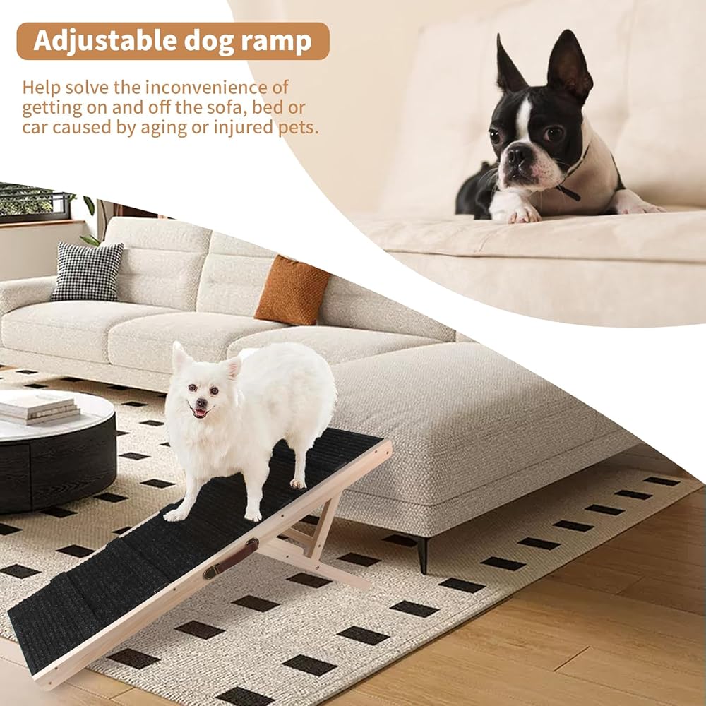 • منحدر للكلاب ذو 7 ارتفاعات قابلة للتعديل: يبلغ طول منحدر السيارة 38 بوصة، ويمكن تعديله إلى 7 ارتفاعات: 12 بوصة و14 بوصة و16 بوصة و18 بوصة و20 بوصة و22 بوصة، والتي يمكن أن تنطبق على ارتفاعات مختلفة لمعظم الأثاث. يساعد منحدر الحيوانات الأليفة حيوانك الأليف على الوصول بسهولة إلى السيارة والسرير المنخفض وعتبة النافذة والأريكة. إنها طويلة بما يكفي لتوفير زاوية تسلق لطيفة.