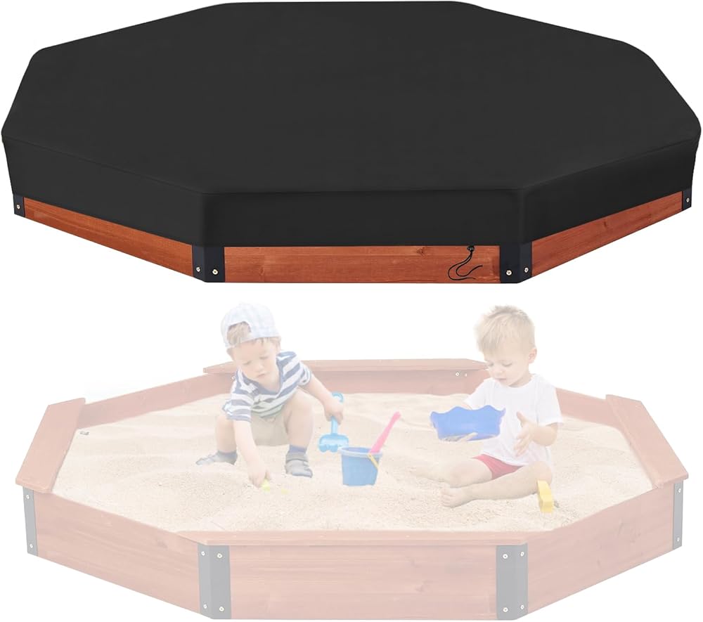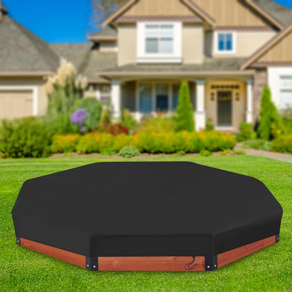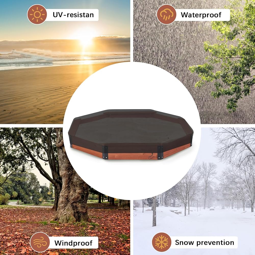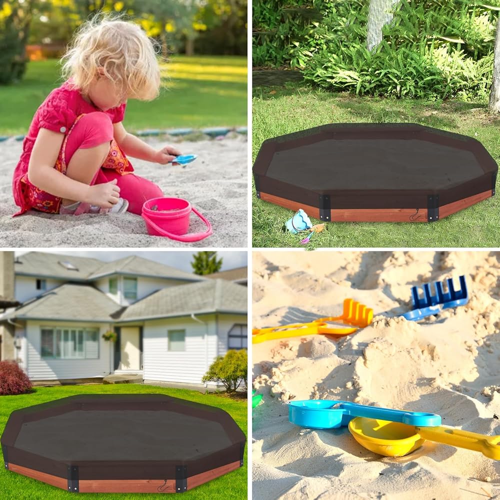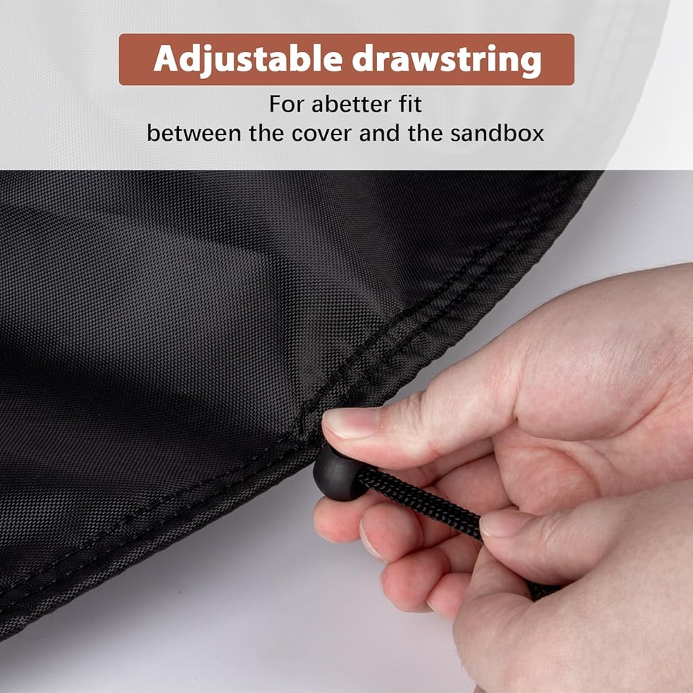 تصميم فريد: تصميم الرباط القابل للتعديل لغطاء صندوق الرمل يجعله أكثر ملاءمة لصناديق الرمل المثمنة. يمنع غطاء صندوق الرمل من أن يتطاير بفعل الرياح العاتية عند وضعه في الخارج. كما أن مقبضي الحمل الموجودين على جانب غطاء صندوق الرمل يجعلان من السهل التقاط غطاء صندوق الرمل ووضعه.