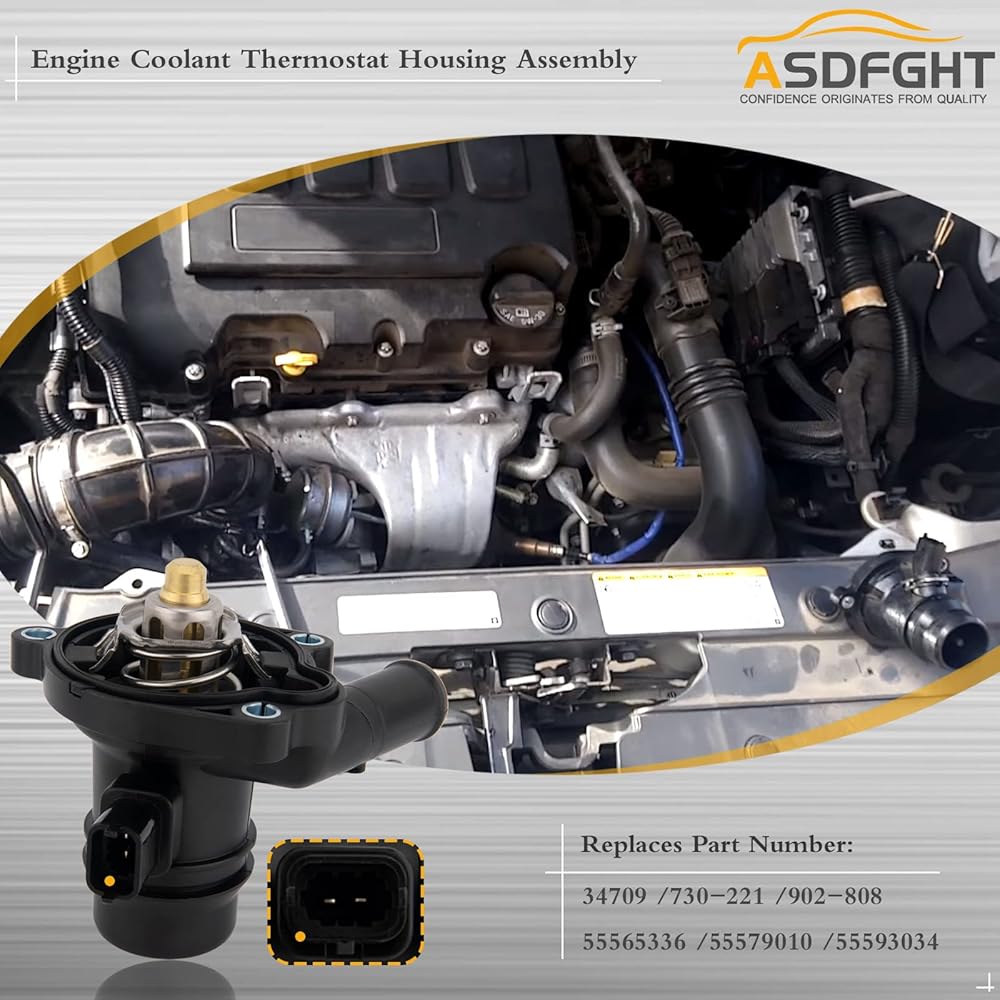 • 【Replace Part】Engine Coolant Thermostat Housing Assembly Replaces Part Number: 55565336, 55579010, 55593034, 34709, 902-808, 730-221, 85993, 25200455,131-180. Please confirm your OE number and the model of your car before the purchase of this accessory.