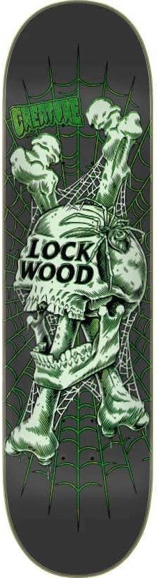 Creature Skateboards Cody Lockwood Keepsake Pro VX Deck with spot gloss and matte graphic art by Matt Cantrell. VX decks are thinner, stronger, and have more pop than standard 7 ply decks featuring 5 plies of North American Maple and 2 layers of Quad X technology. Now on a new mellower concave and Stumps shape. Measures 8.25" x 32.04" with a 14.353" Wheelbase.