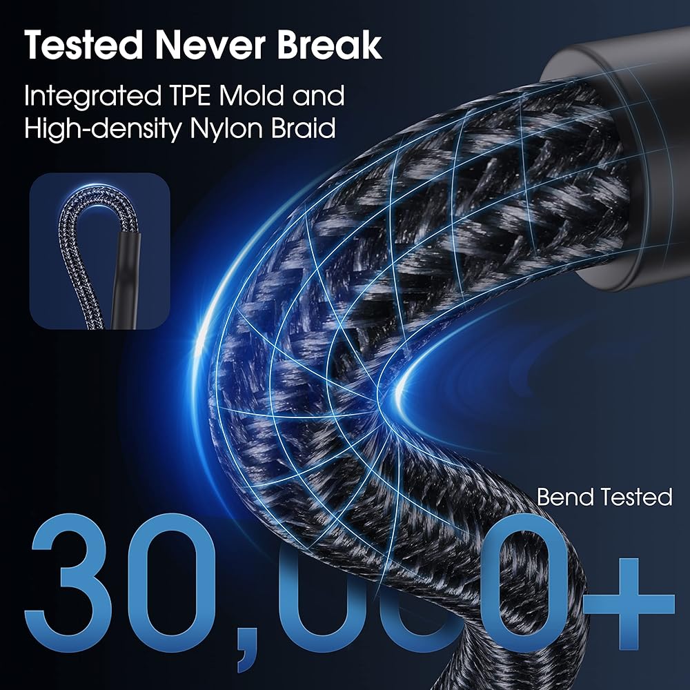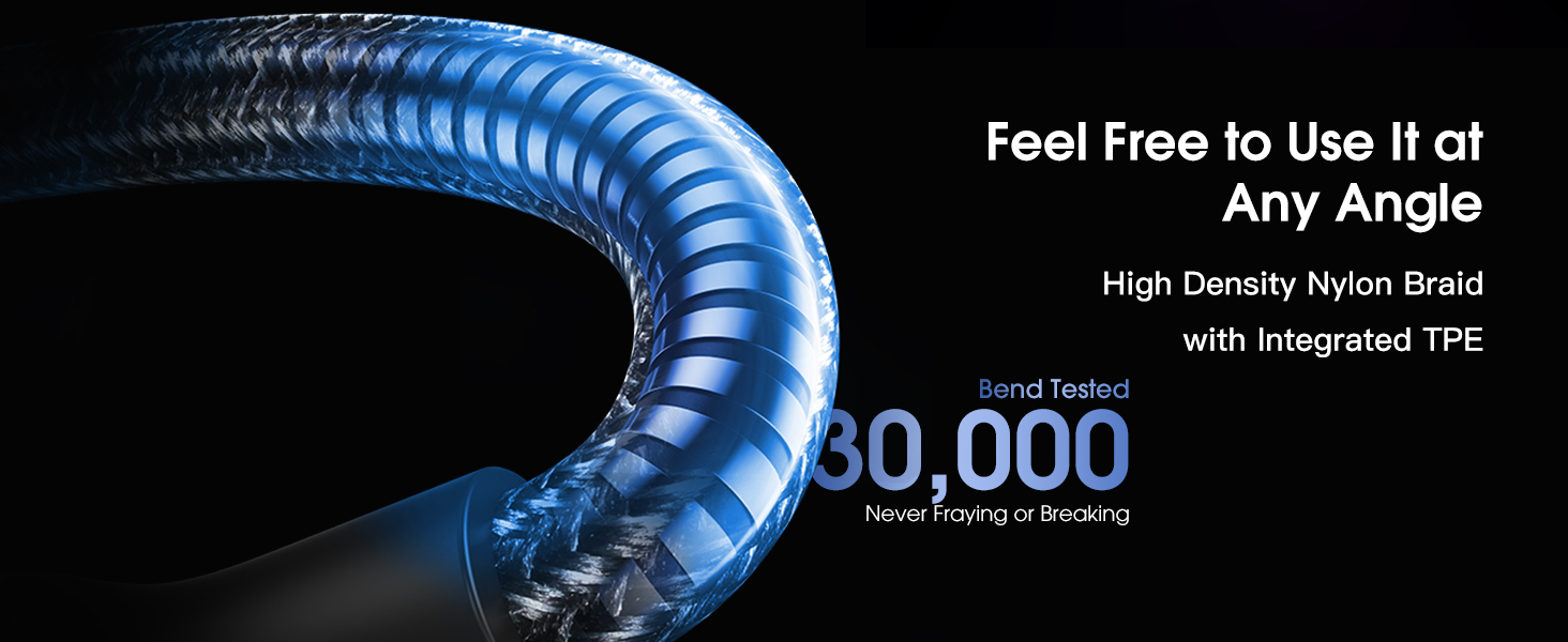 [لا يتآكل أو ينكسر أبدًا] من خلال اعتماد تصميم متكامل في الواجهة، يتم توفير حماية كافية للواجهة، ولا يزال من الممكن استخدامها بشكل مثالي بعد أكثر من 30,000 مرة من اختبارات الانحناء. وفي الوقت نفسه، يتم استخدام ألياف كيفلر ذات الدرجة العسكرية كمادة الحبل، مما يجعل جسم الخيط أقوى من أي وقت مضى، ولا يخاف من عضات الحيوانات الأليفة على الإطلاق.