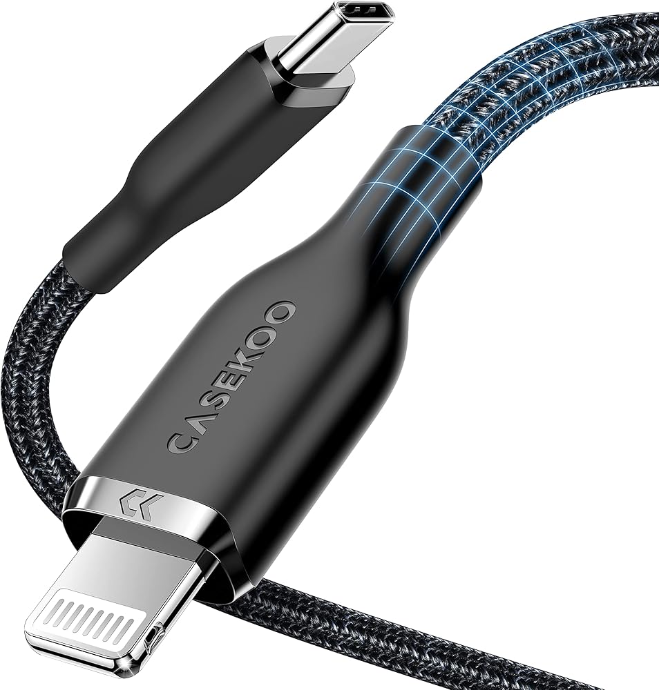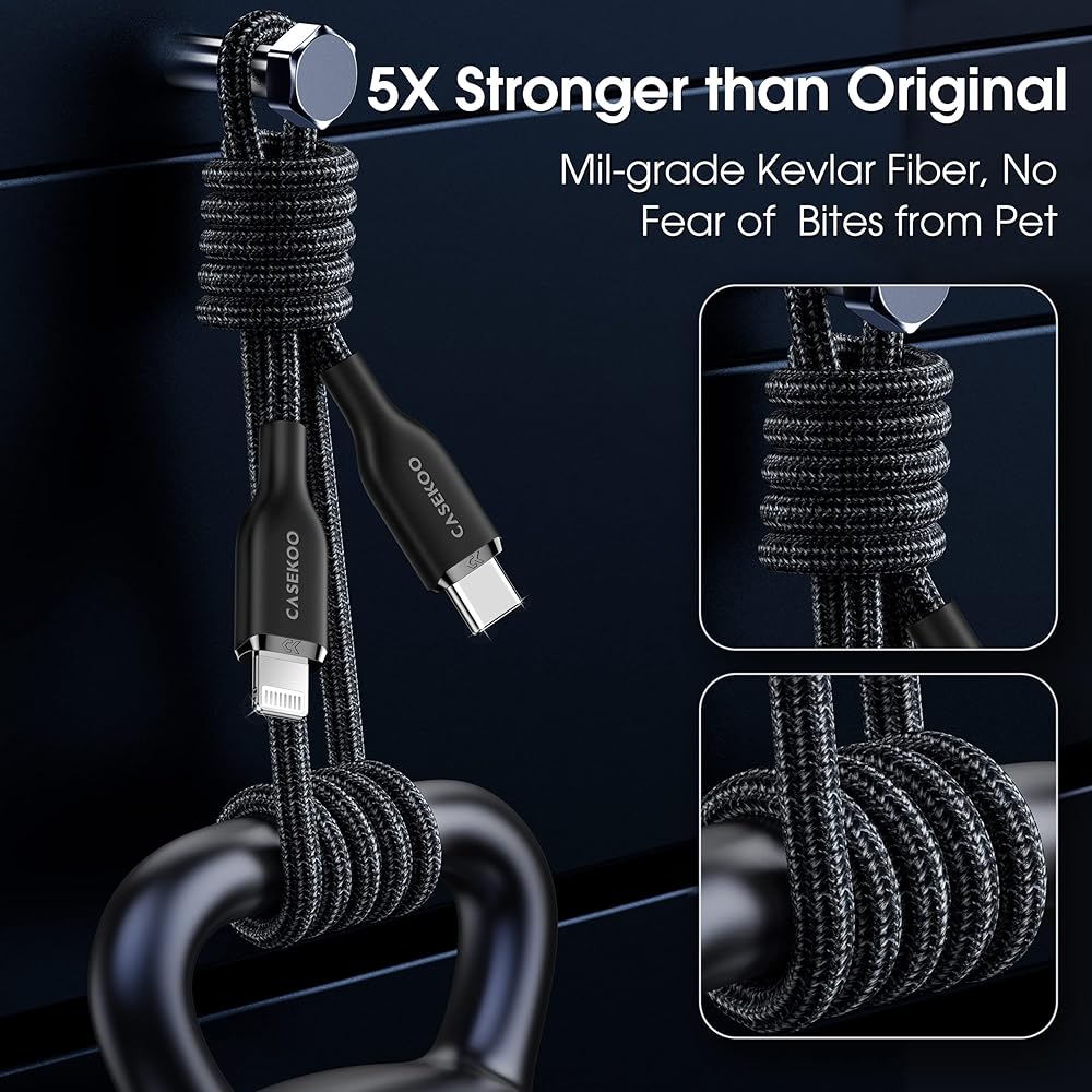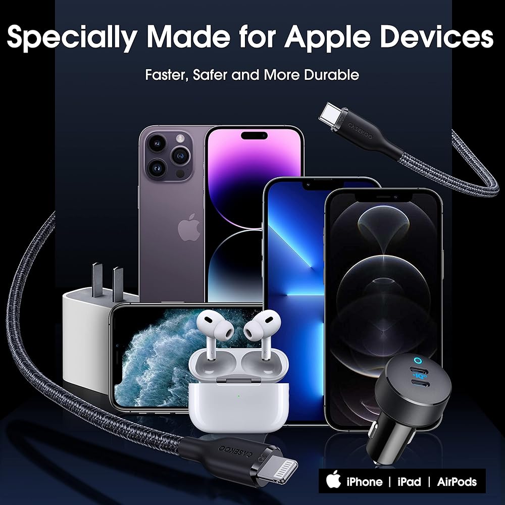 [مصمم خصيصًا لأجهزة هاتفك] كابل مجدول من النايلون عالي الجودة حاصل على شهادة. يناسب تمامًا جميع الأجهزة ذات منافذ الإضاءة، واستمتع بتجربة شحن أسرع وآمنة مع كابل الإضاءة CASEKOO.