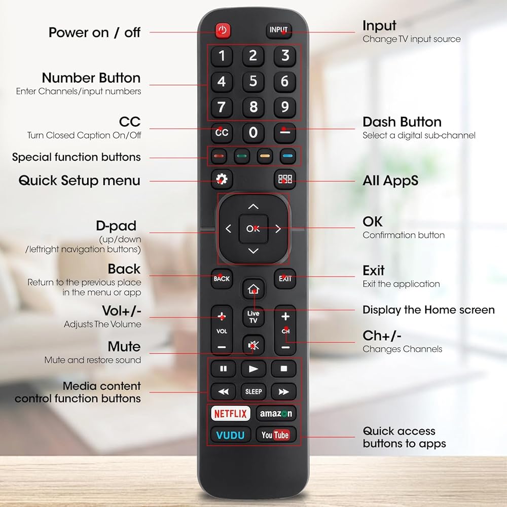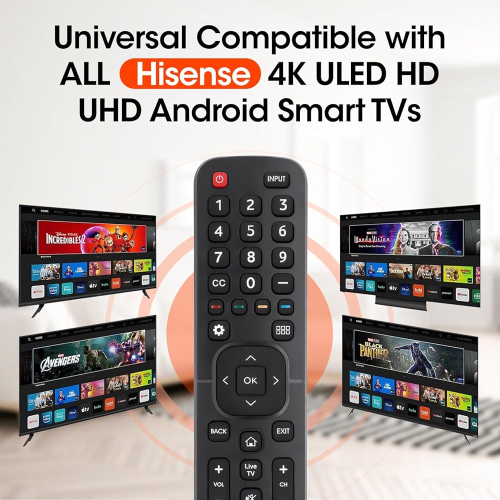 • 🧰(جهاز التحكم عن بعد العالمي المتوافق مع جميع تلفزيونات Hisense 4K ULED HD UHD Android الذكية، يحافظ على جميع جودة ووظائف جهاز التحكم عن بعد الأصلي.