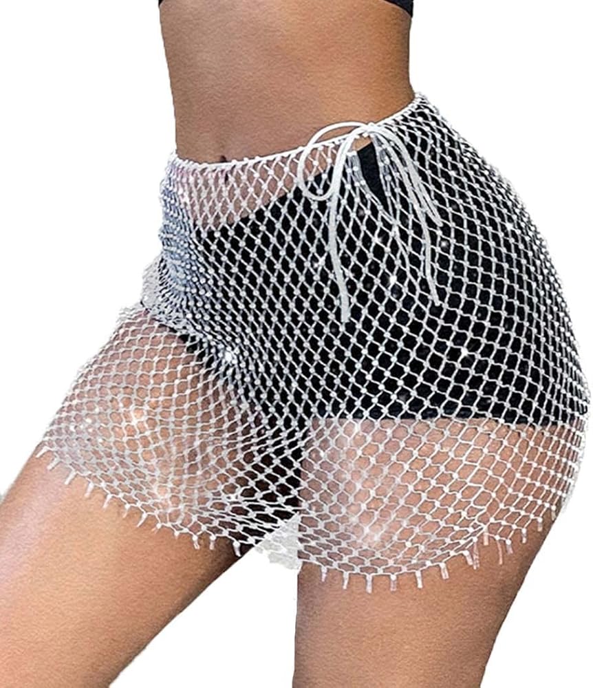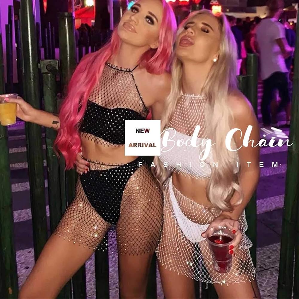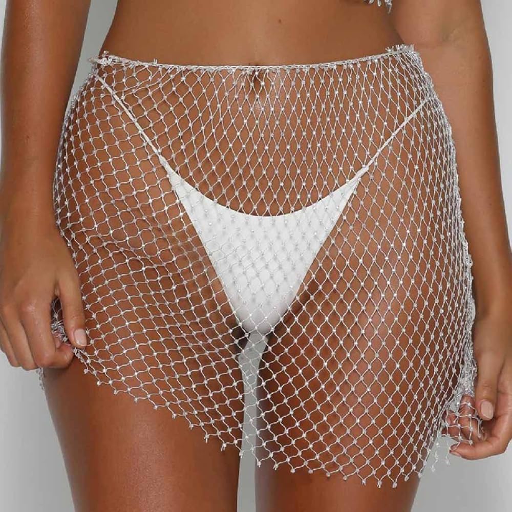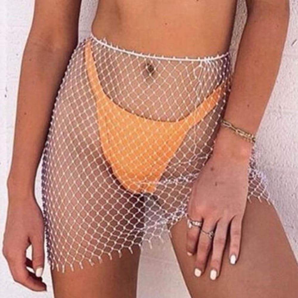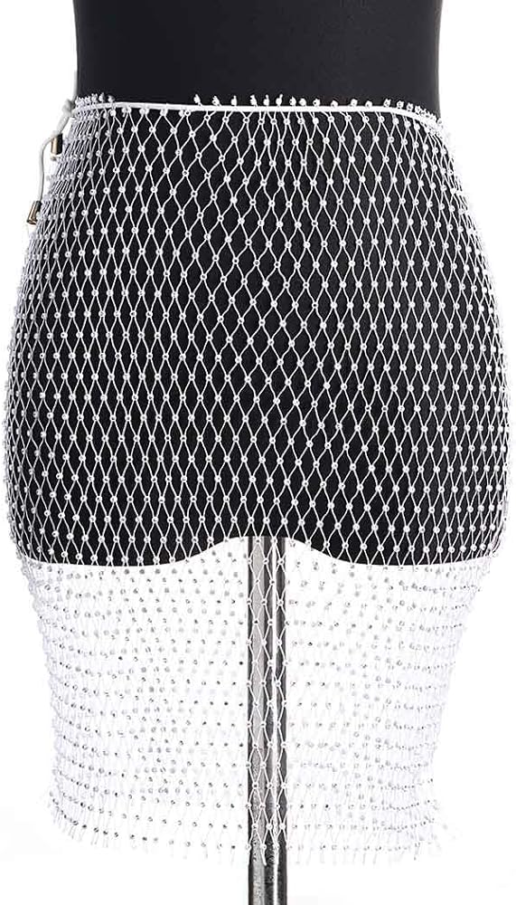 Asooll الأبيض شبكة كريستال تنورة حجر الراين شبكة صيد السمك التنانير الرقص الشرقي وشاح الورك موضة حفلة الهذيان مجوهرات الجسم للنساء والفتيات