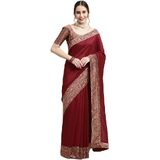 ساري حريمي من البوليستر المصبوغ والدانتيل من قماش الجاكار مع قطعة بلوزة غير مخيطة