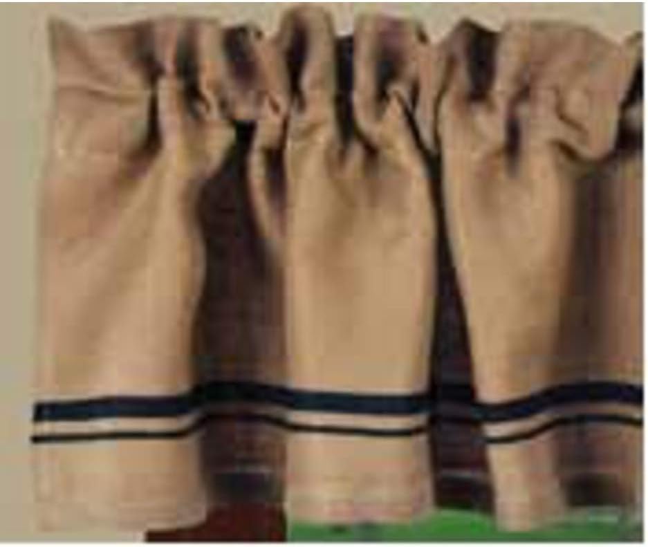 Burlap Stripe - Window Treatments. Burlap. Size is 72" x 15.5". Color is Black and Wheat. Decorate your window with this valance designed with your love for Country decor in mind.