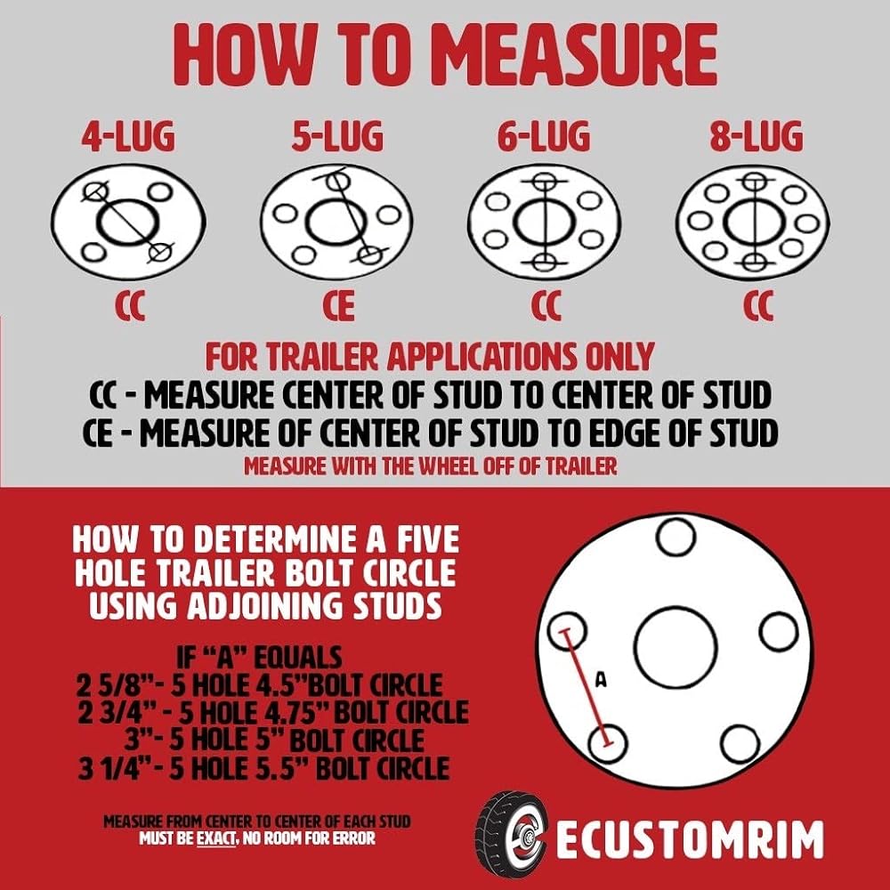 - Bolt Configuration: 5 Lug 4.5" Center - See diagram for fitment