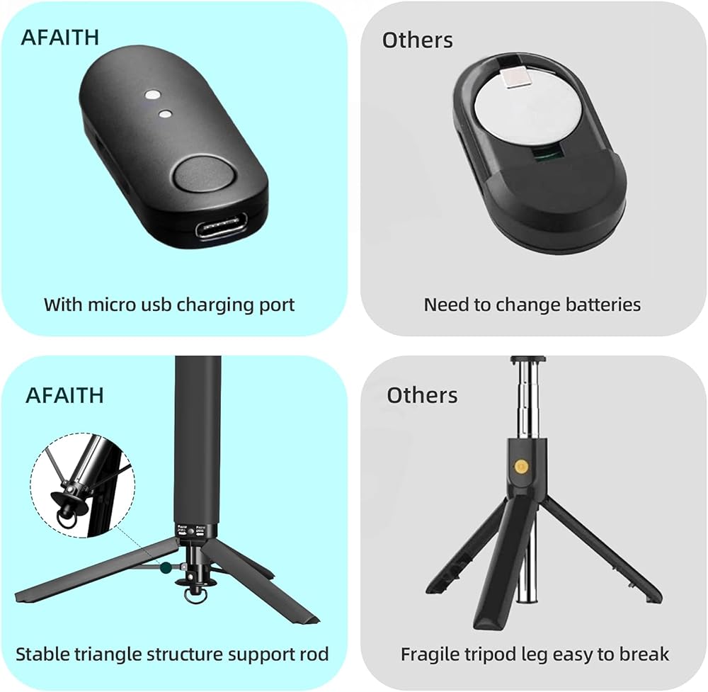 🏞[جهاز تحكم عن بعد بلوتوث قابل لإعادة الشحن وقابل للفصل]: مع منفذ شحن ميكرو يو إس بي، لا حاجة لتغيير البطاريات. يمكن أن يصل نطاق الاتصال اللاسلكي إلى 32.8 قدمًا/10 أمتار. جهاز التحكم عن بعد مخصص فقط للهواتف الذكية، وليس لـ GoPro أو الأجهزة الأخرى.