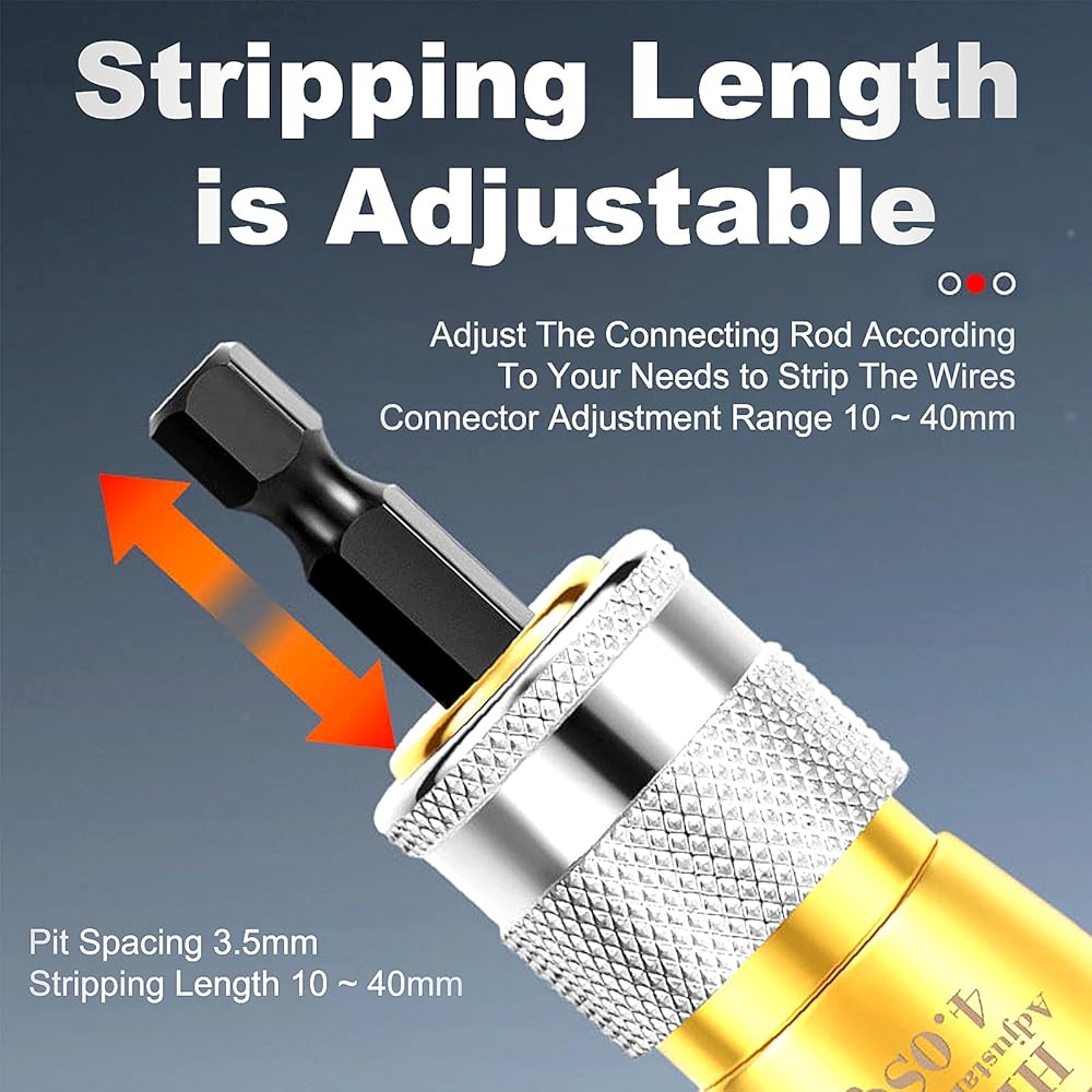 🔩【Adjustable Stripping Length】Experience precision like never before with our Wire Stripping and Twisting Tool. Featuring sharp, adjustable jaws capable of stripping outer sheaths from cables with ease, and boasting an adjustable stripping length range from 10 to 40mm, ensuring versatile usage for various wire sizes