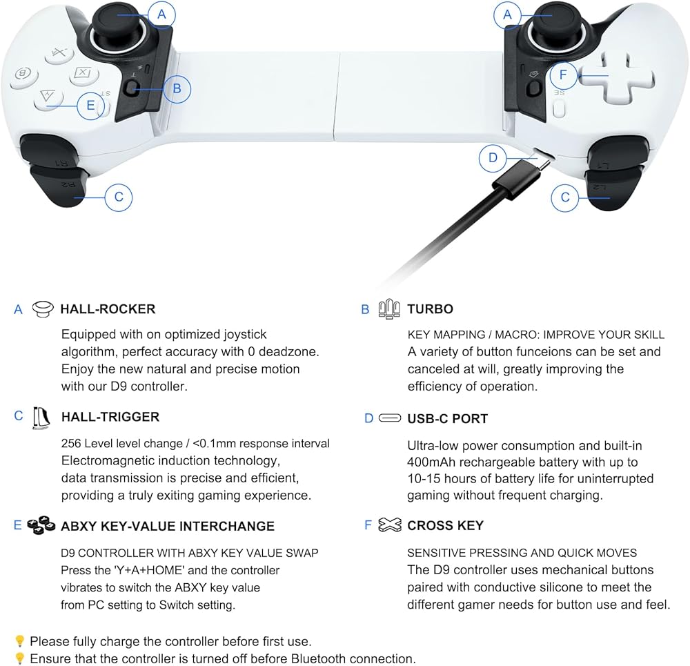 🔋🔋بطارية طويلة الأمد بقدرة 600 مللي أمبير في الساعة: تضمن وحدة التحكم التي تعمل بنظام Android جلسات لعب متواصلة، حتى تتمكن من الاستمتاع بأكثر من 15 ساعة من اللعب الغامر.