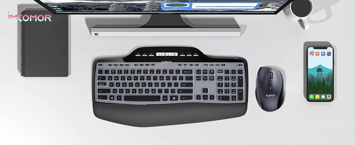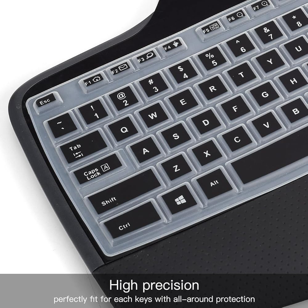 حماية كاملة للوحة المفاتيح: يتميز واقي لوحة المفاتيح Logitech MK710 بدقة عالية وشكل بخطوة واحدة، كل مفتاح ورمز مصبوب بشكل فردي ومطبوع خصيصًا على السيليكون للحصول على مظهر احترافي يدوم طويلاً، ومناسب تمامًا لكل مفتاح مع حماية شاملة.