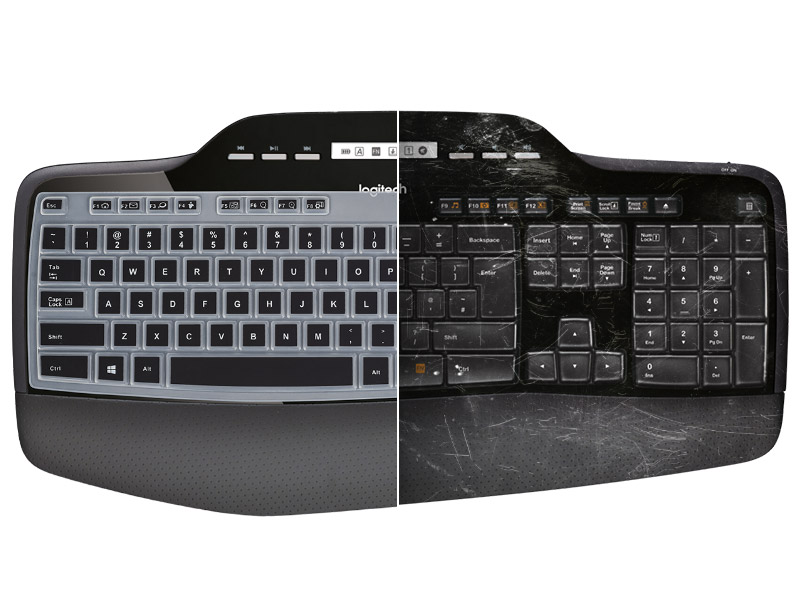 رفيع للغاية ونحيف: يتميز غطاء لوحة المفاتيح Logitech MK710 بسمك رفيع للغاية يبلغ 0.13 ملم لتقليل التداخل في الكتابة، كما تمنحك مادة السيليكون الناعمة والمرنة تجربة كتابة ممتعة.