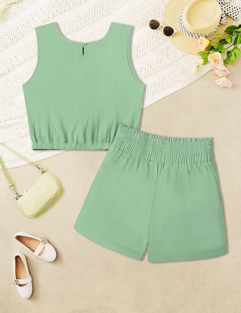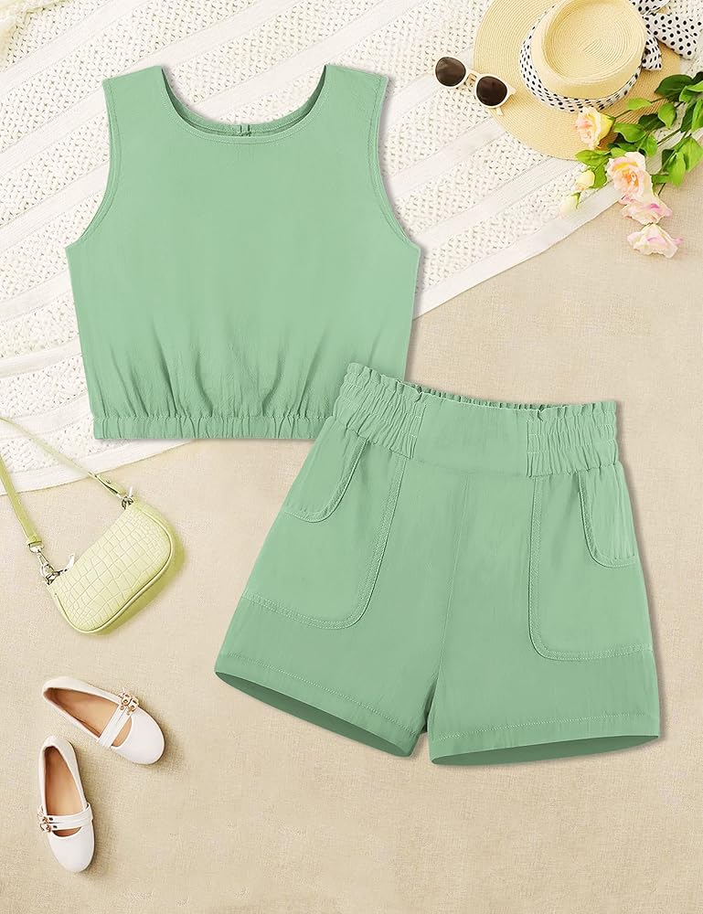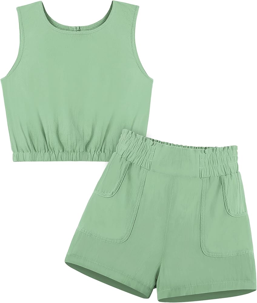 【تصميم فريد】تم تصميم ملابس الأطفال الصغار للفتيات بجزء علوي صلب بدون أكمام، يتوافق مع السراويل القصيرة. ارتديه سيجعل فتاتك مشرقة جدًا وعصرية.