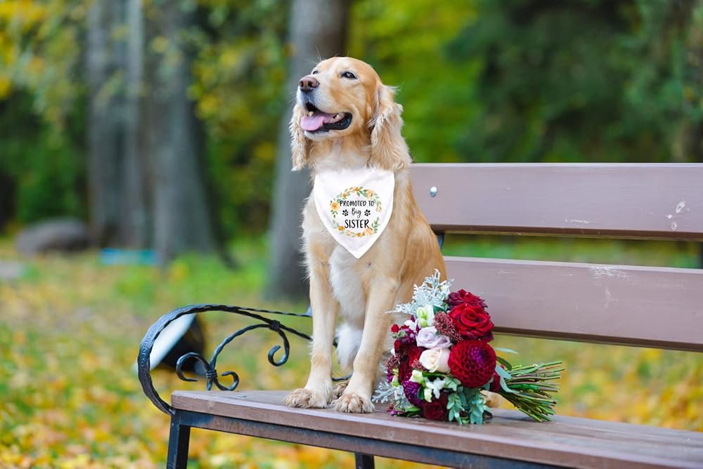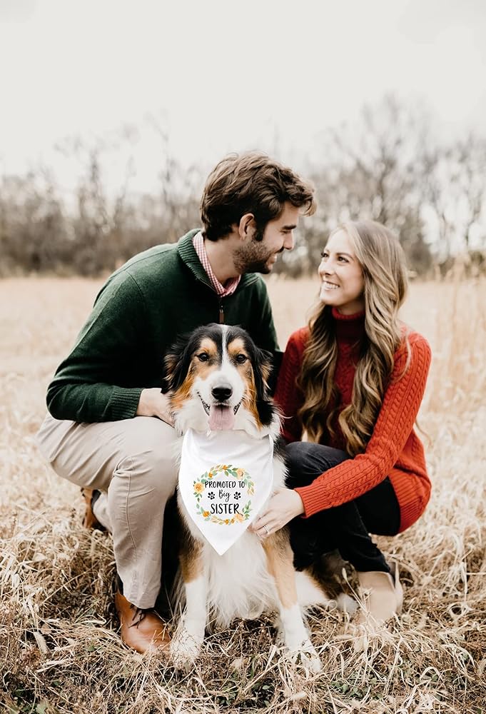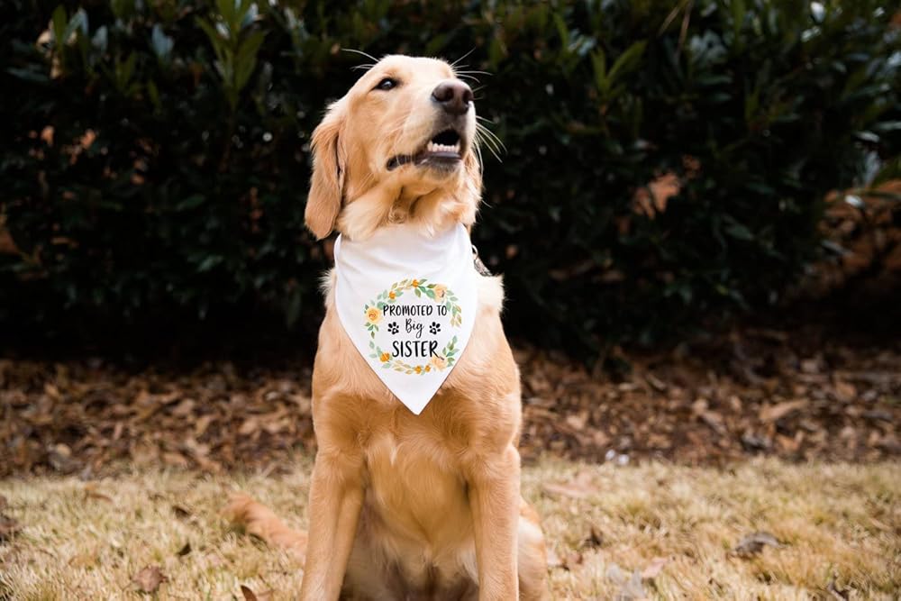 مضحك الترويج ليكون الأخت الكبرى اكليلا من الزهور البيضاء مثلث كلب باندانا، صغير متوسط ​​كبير الفتيات كلب عيد ميلاد الدعائم الطرف لمحبي الكلاب الحيوانات الأليفة هدية