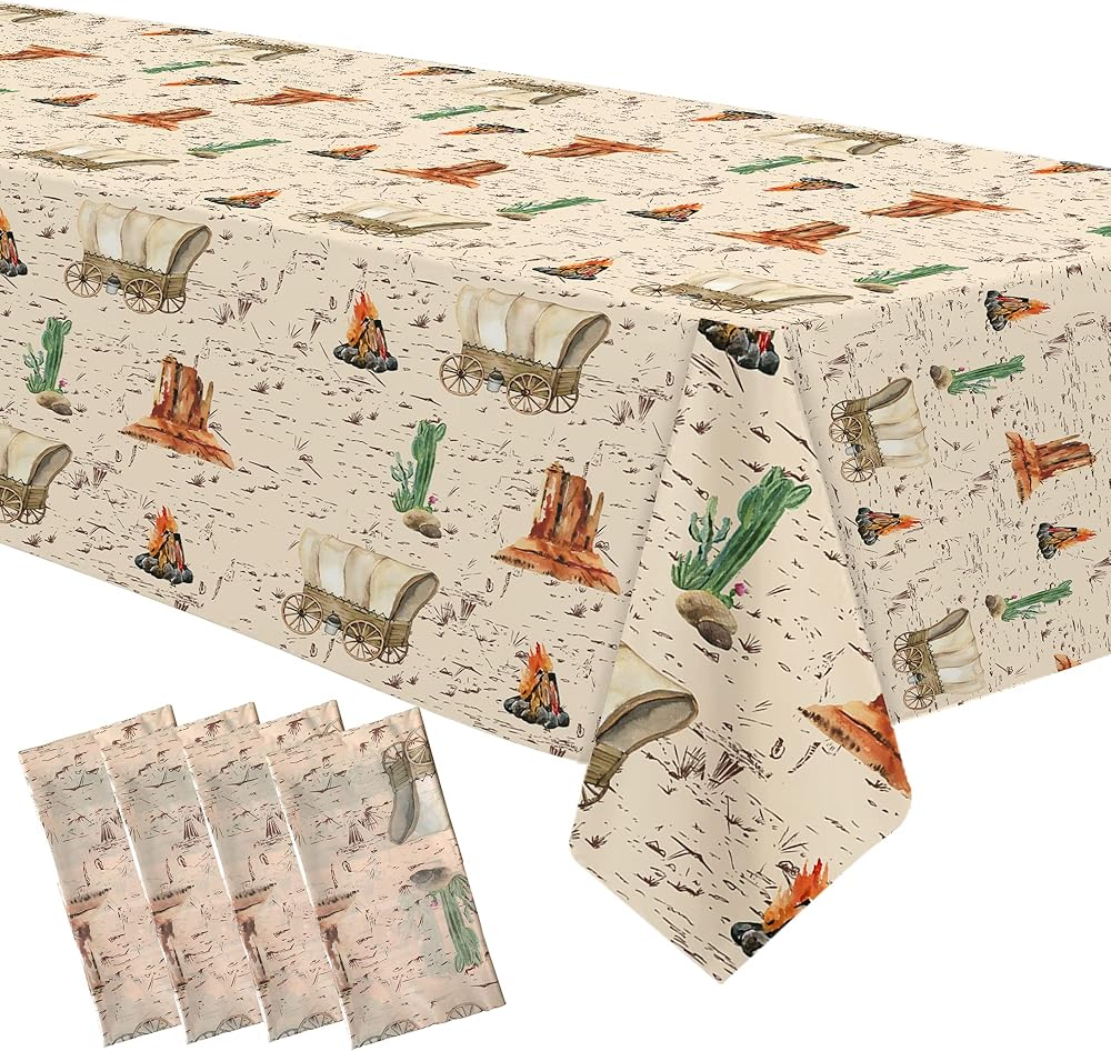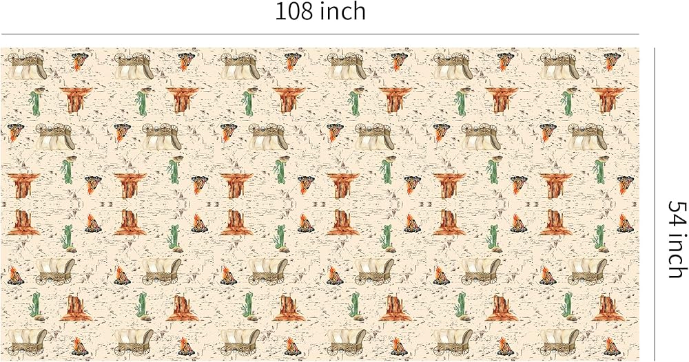 【Appropriate Size】4 pieces of western theme party decorations tablecloths set, the size of each western cowboy tablecloth for a birthday is 108 x 54 inches/ 274 x 137 cm, which fits 8 feet-long tables that can accommodate 8-10 people, suitable for cowboy birthday party supplies for boys