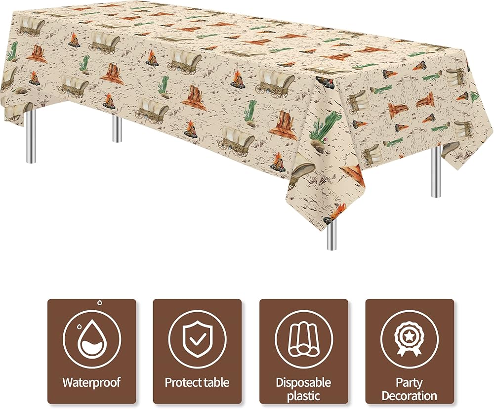 【Premium Material】Our cowboy party decorations tablecloths are made of high-quality material, not easy to be ripped. They're completely disposable so no need to worry about clean-up