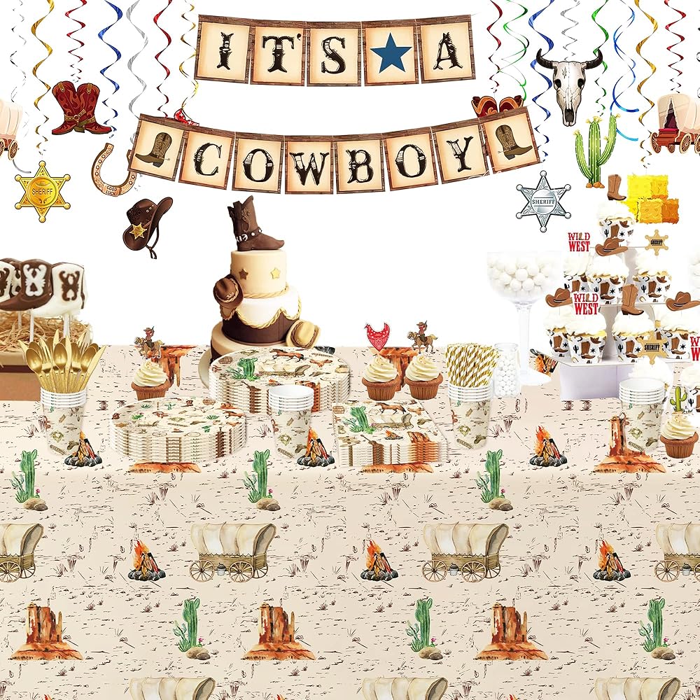 Western Cowboy Tablecloth For Boys Birthday & Baby Shower