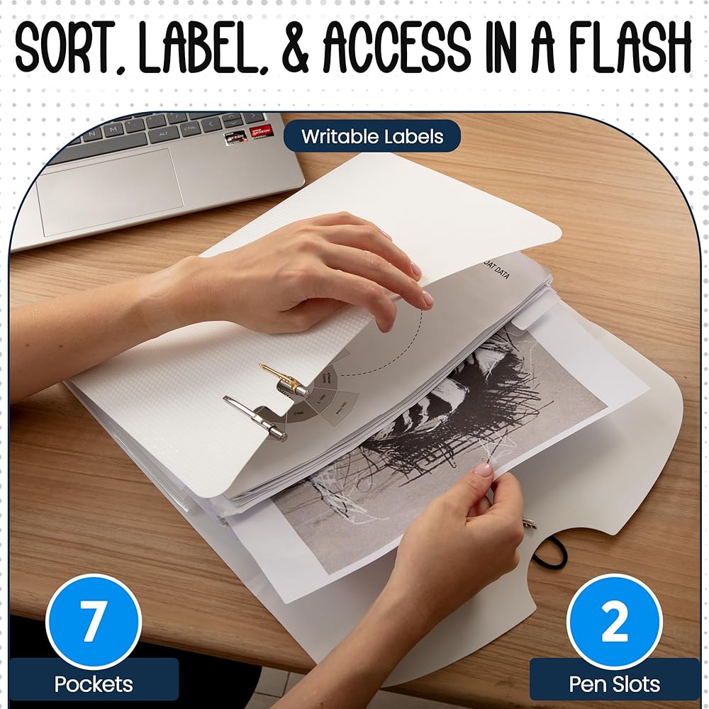 حافظ على أوراقك تحت المراقبة - قم بالفرز والتنظيم بكفاءة باستخدام مجلد الملفات القابل للتوسيع المكون من 7 جيوب! يتميز هذا المنظم بجيوب مبوبة وملصقات قابلة للكتابة، وهو مقاس 13 × 9.8 بوصة هو الحل الأمثل لإبقاء الأوراق في متناول اليد بسهولة.