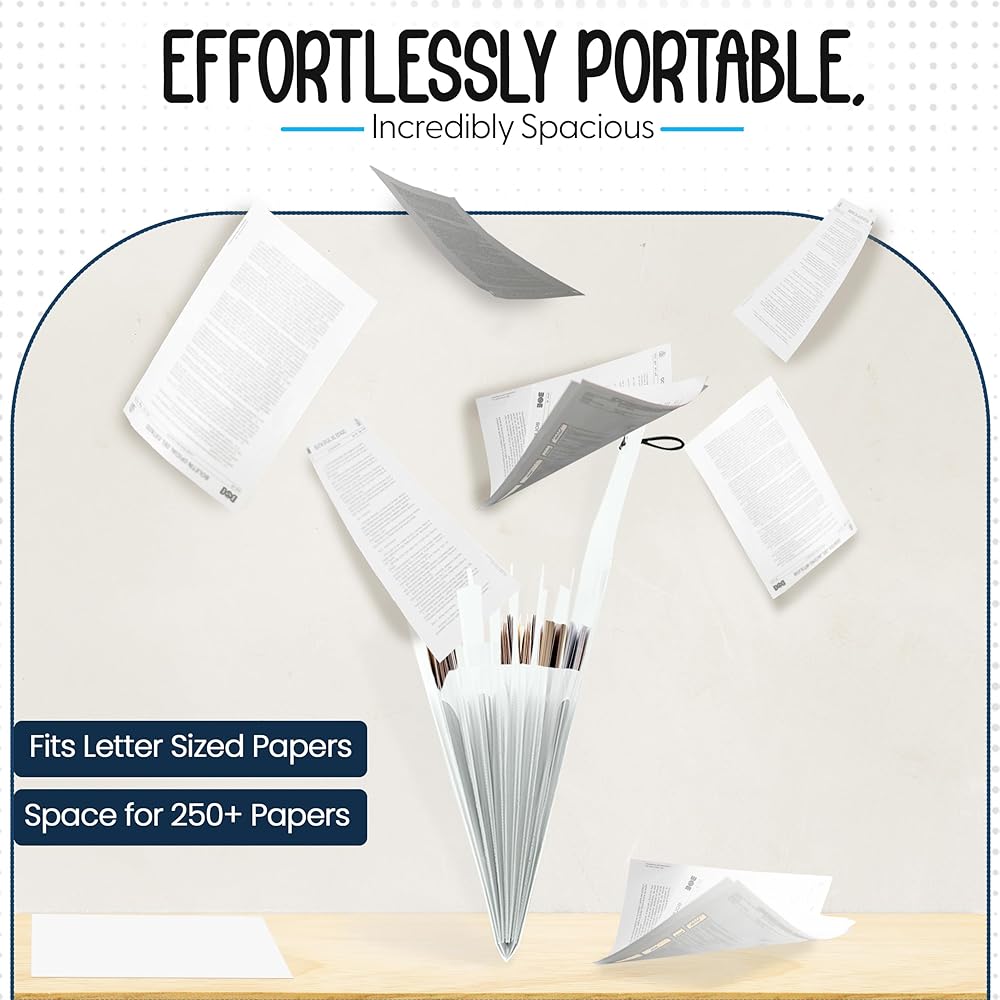 محمول ومتعدد الاستخدامات - مجلدنا القابل للتوسيع، صغير الحجم ولكنه واسع، يناسب الأوراق بحجم الحروف بشكل مثالي. مع مساحة تتسع لأكثر من 250 ورقة، فهي مثالية للحمل إلى الاجتماعات أو الفصول الدراسية أو أينما يأخذك يومك.