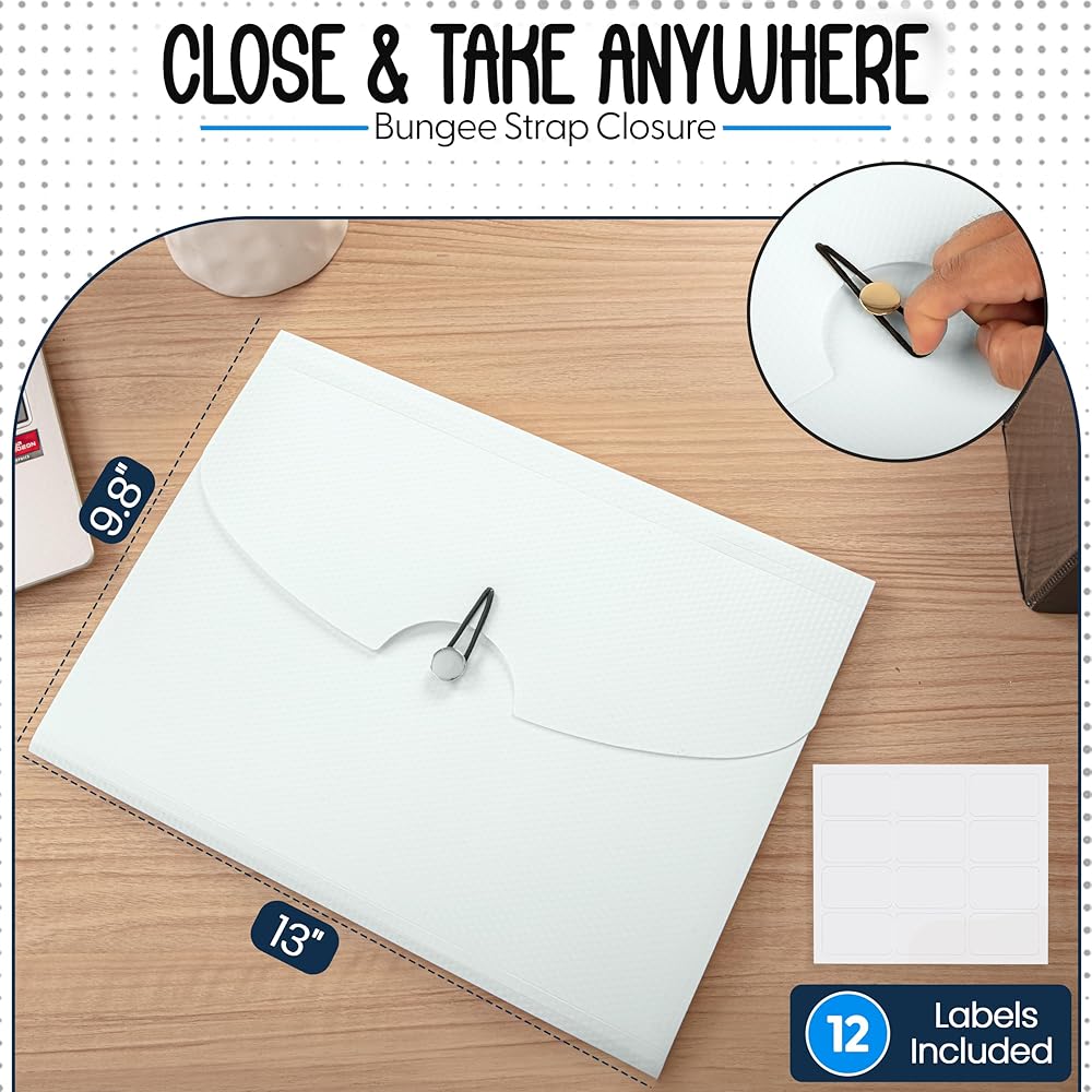 مصنوعة من أجل المتانة - مصنوعة من البلاستيك القوي، هذه المجلدات المنظمة للملفات قوية بما يكفي لتحمل التمزق والحفاظ على شكلها بمرور الوقت. يضمن إغلاق الشريط المطاطي الآمن بقاء مستنداتك في مكانها.