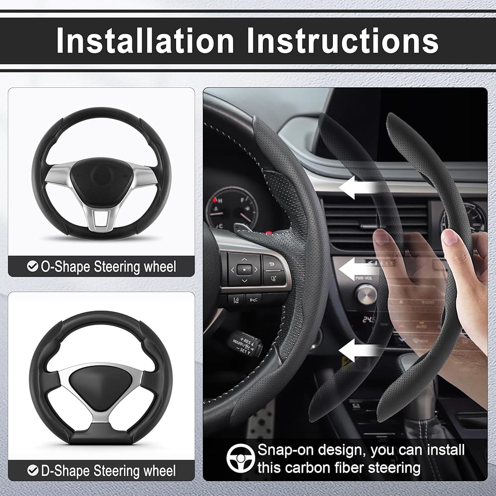 Easy Installation:Embedded design. First clamp the left steering wheel sleeve on the steering wheel, then put the right steering wheel sleeve on the steering wheel.