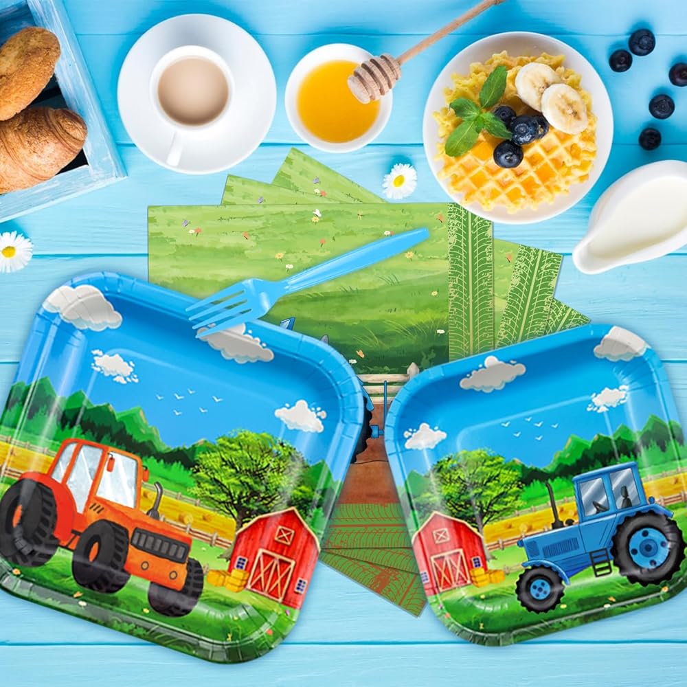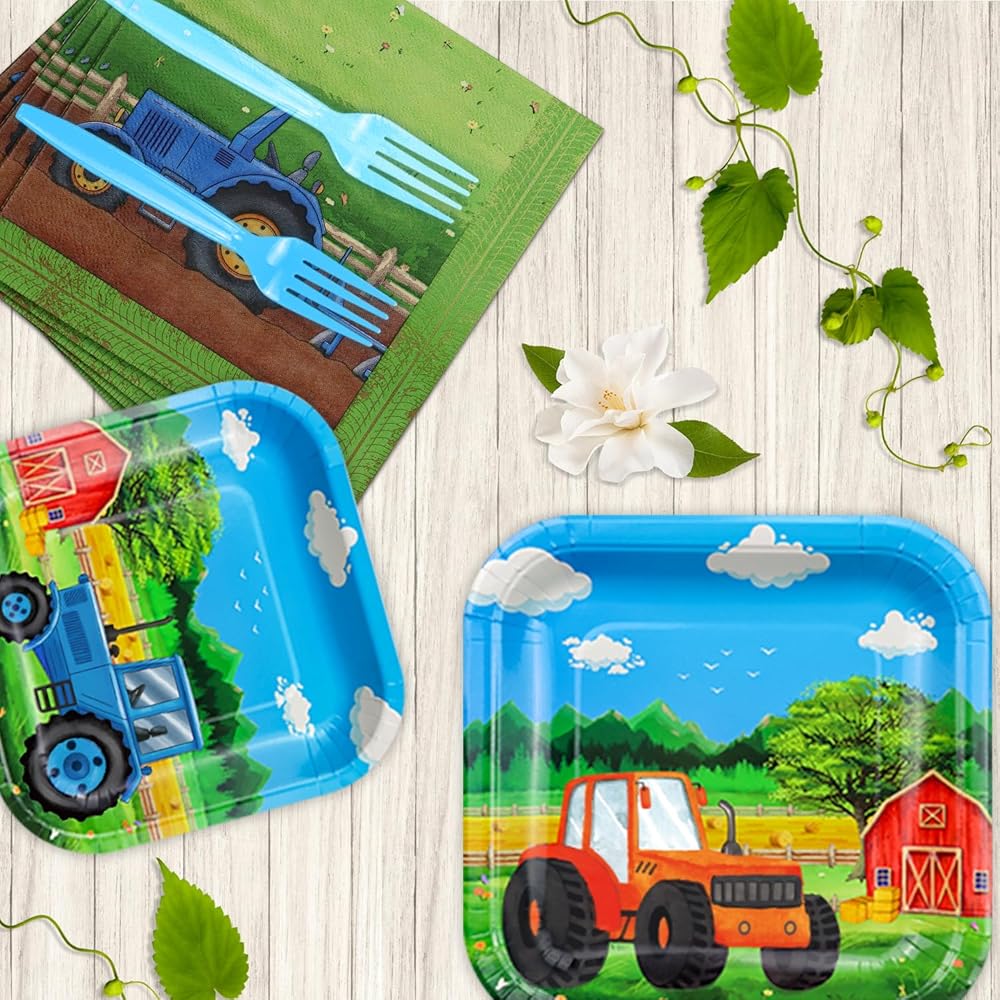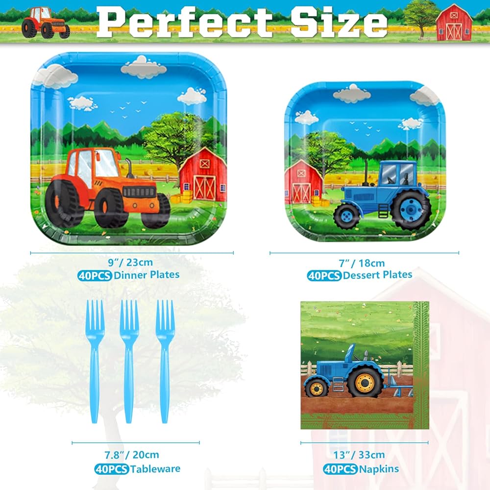 It is a rich and wonderful set of barnyard birthday party supplies, suitable for any age and perfect for an essential part of any tractor theme birthday party or event. Let's create your exclusive birthday party together, which adds color and charm to your party.