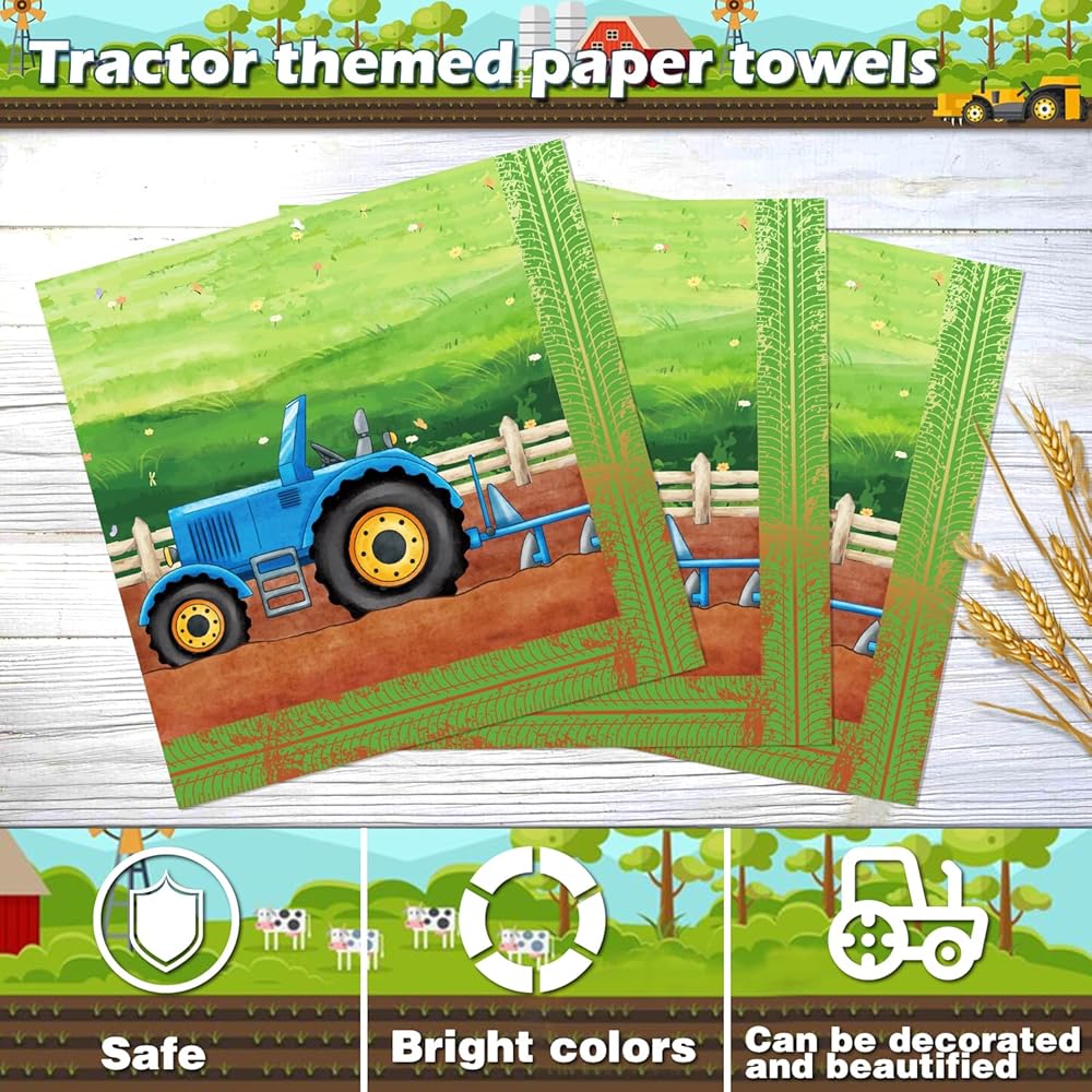 40 x tractor theme napkins