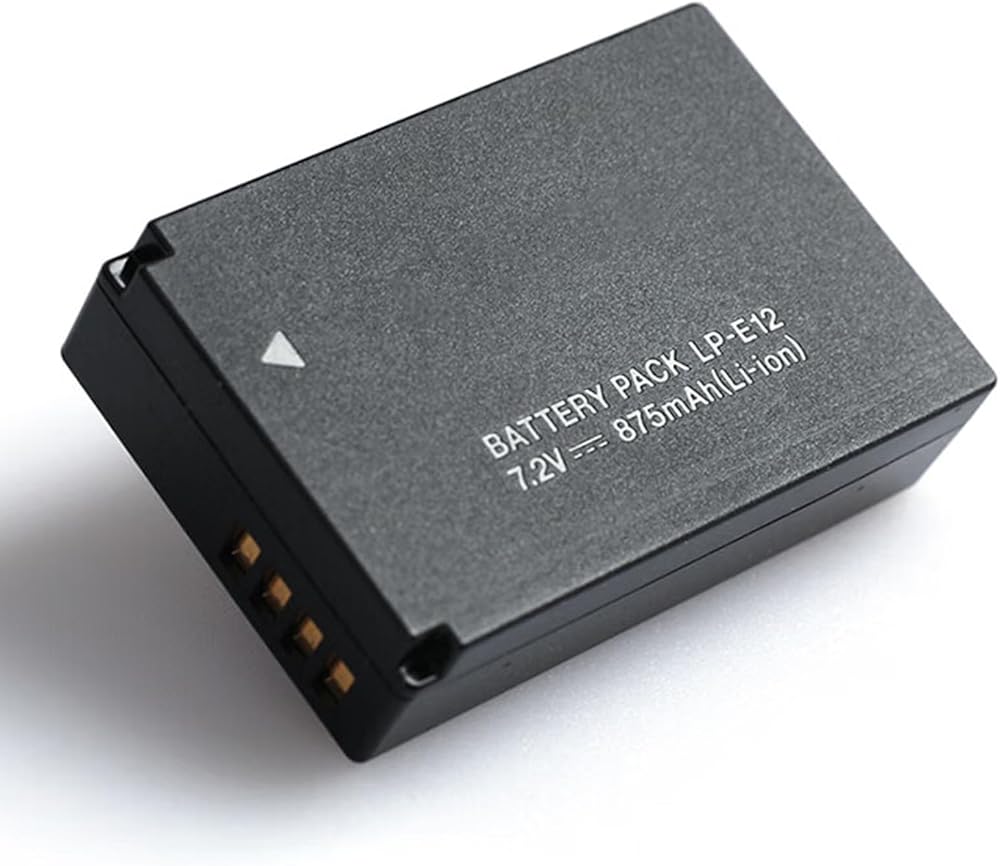 Battery Pack LP-E12, rechargeable lithium-ion battery. bring your digital camera back to life with a new battery. Make sure you never miss another once-in-a-lifetime moment by having a new, battery specifically designed for your Canon digital camera. This LP-E12 rechargeable batteries are engineered to meet or exceed OEM specifications and feature the latest battery technology, including advanced circuitry, voltage regulation, and thermal circuit protection. Compatible with Canon LP-E12 battery chargers. Product Details: Battery Capacity: 875mAh Battery Voltage: 7.4V Battery Type: Li-ion1. Compatible with battery models: Canon LP-E12 LPE122. Compatible with charger models: Canon LC-E12 LC-E12E3. Compatible with camera models: Canon EOS 100D Canon EOS M Canon EOS M2 Canon EOS M10 Canon EOS M50 Canon EOS M50 Mark II Canon EOS M100 Canon EOS M200 Canon EOS Rebel SL1 Canon PowerShot SX70 HSPackage Includes:1 x Replacement LP-E12 battery