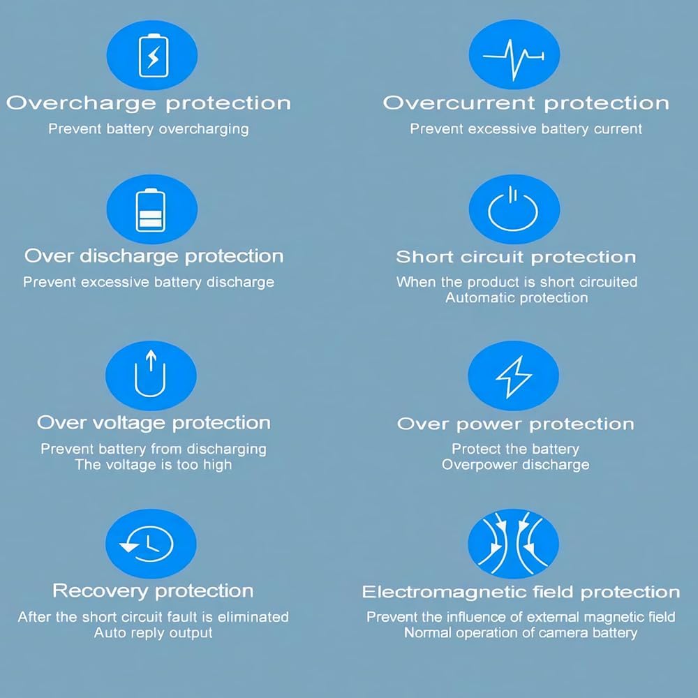 Full one year warranty,100% Safety Guarantee: Built with multiple circuit protection (over-charging, short-circuit, high-temperature, and surge protection), and high-quality, fire-resistant construction. Batteries include a one-year warranty.